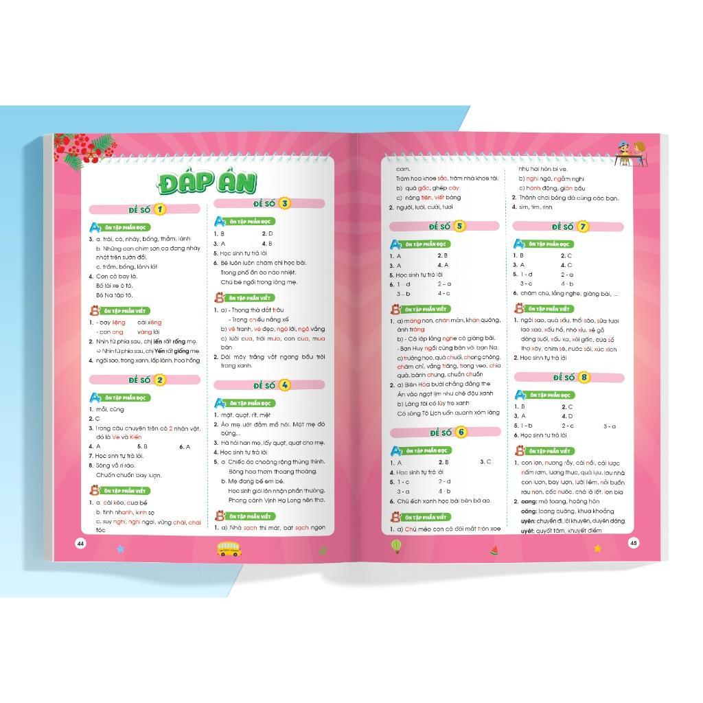 - 20 bộ đề đa dạng Mỗi cuốn sách bao gồm 20 bộ đề. Điều này giúp các em thực hành và nắm vững kiến thức thông qua các dạng bài tập khác nhau. Sự đa dạng này cũng giúp rèn luyện khả năng tư duy, suy luận và kích thích trí tưởng tượng của các em nhỏ.