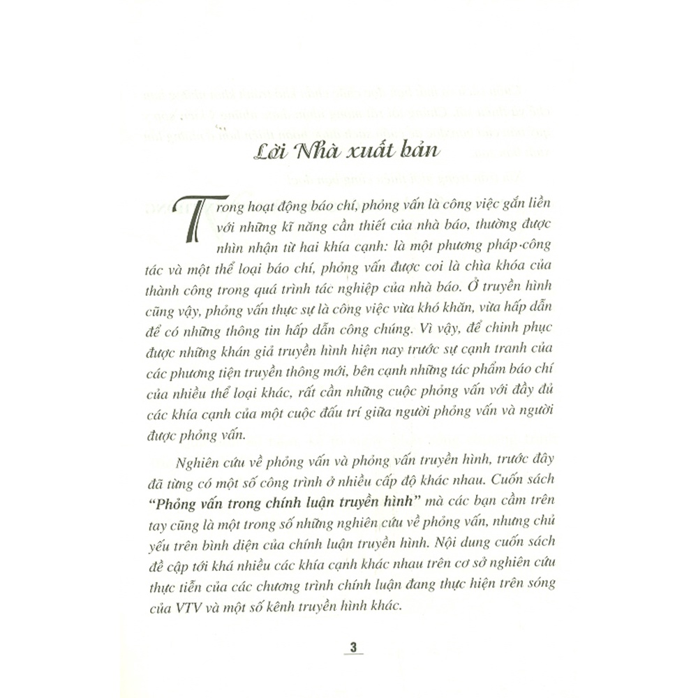 cũng là một trong số những nghiên cứu về phỏng vấn, nhưng chủ yếu trên bình diện của chính luận truyền hình. Nội dung cuốn sách