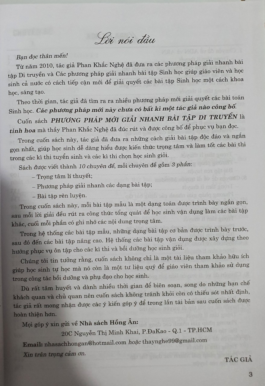 Cuốn sách Phương Pháp Mới Giải Nhanh Bài Tập Di Truyền là tinh hoa mà thầy Phan Khắc Nghệ đã đúc rút và đầu tiên được công bố để phục vụ bạn đọc.