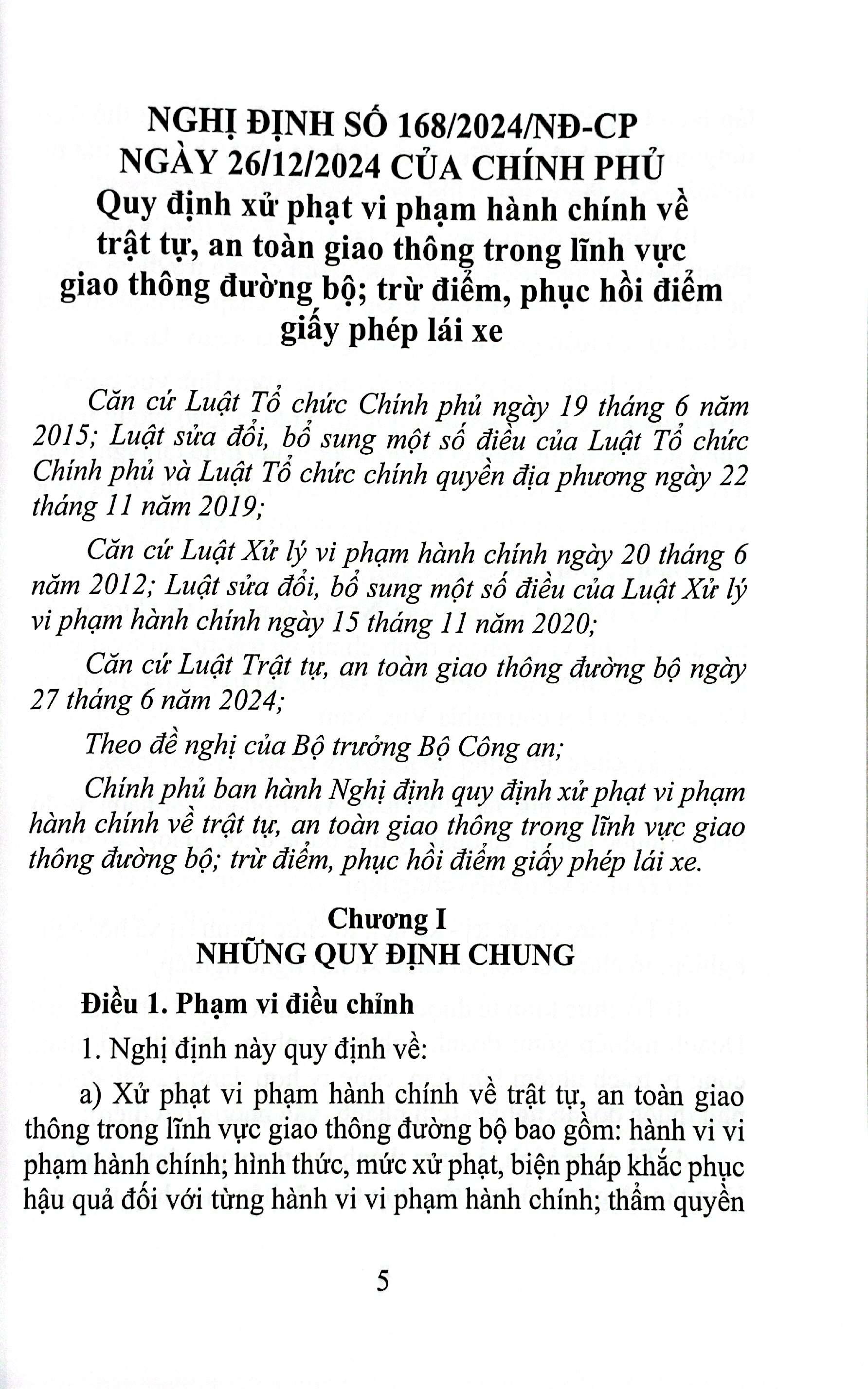 Ngày 26/12/2024, Chính phủ ban hành Nghị định số 168/2024/NĐ-CP quy định xử phạt vi phạm hành chính về trật tự, an toàn giao thông trong lĩnh vực giao thông đường bộ; trừ điểm, phục hồi điểm giấy phép lái xe. Nghị định gồm 04 chương, 55 điều sẽ chính thức có hiệu lực từ ngày 1/1/2025, đánh dấu bước chuyển quan trọng trong việc tăng cường trật tự an toàn giao thông đường bộ.