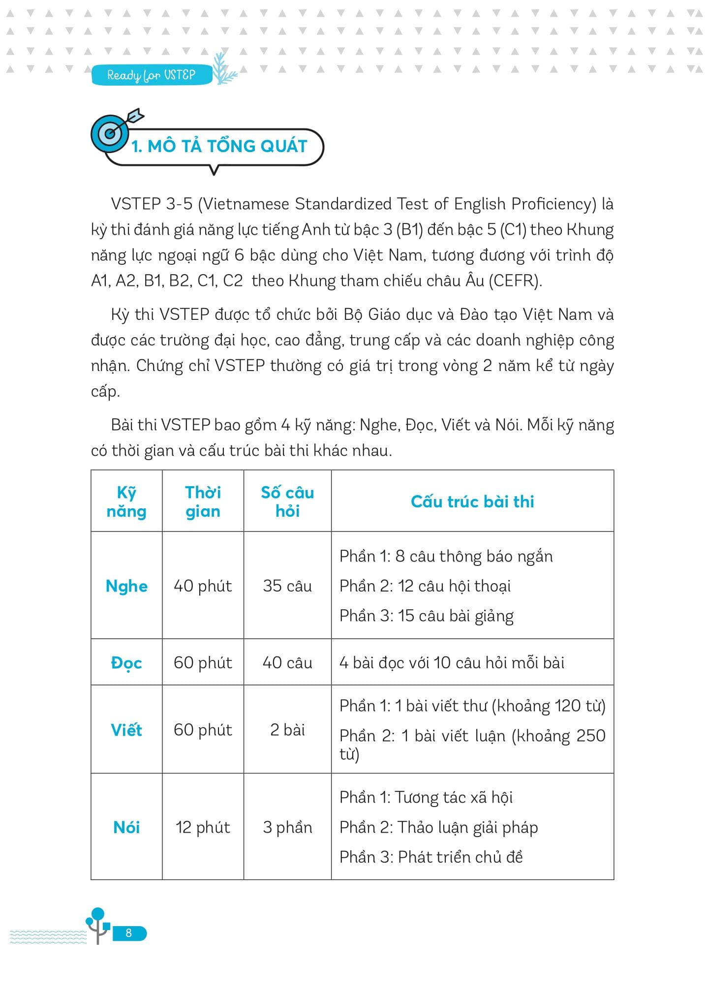 Kiến thức trong sách được chia theo từng kỹ năng và từng dạng bài trong bài thi VSTEP, kết hợp với những chiến thuật và phương pháp làm bài hiệu quả.