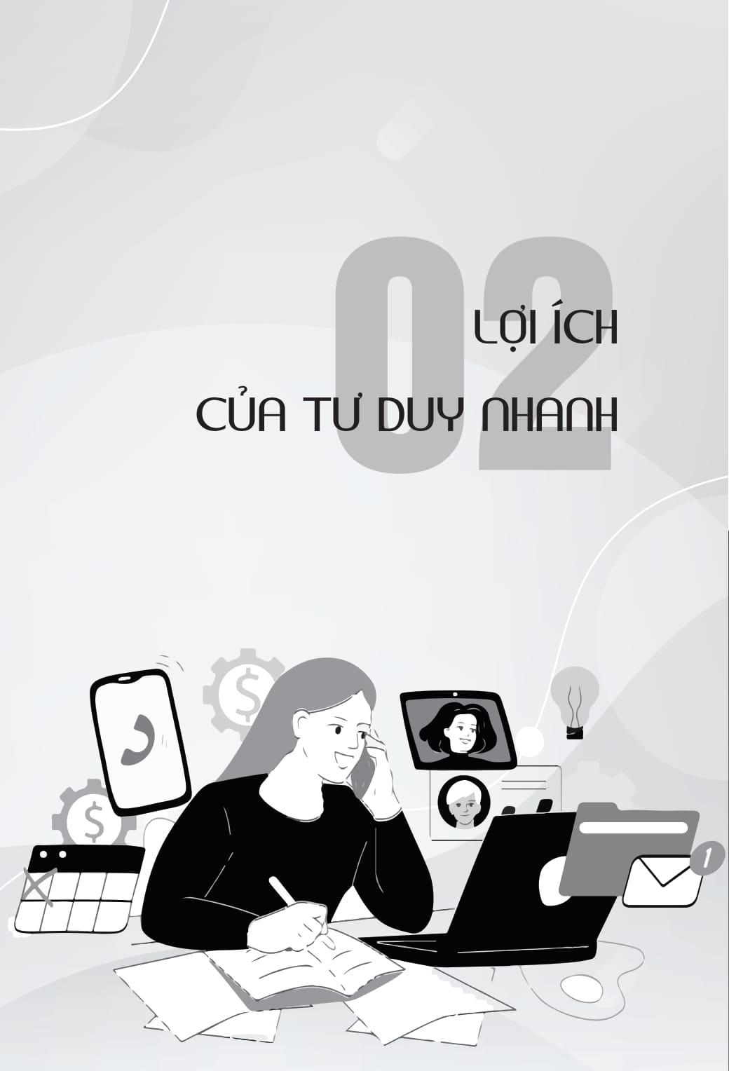 • Phần 1: Giải thích bản chất và vai trò của tư duy nhanh, giúp người đọc hiểu được lợi ích cụ thể như nâng cao khả năng ứng biến, ra quyết định chính xác trong áp lực thời gian, cải thiện hiệu quả giao tiếp và xử lý vấn đề.