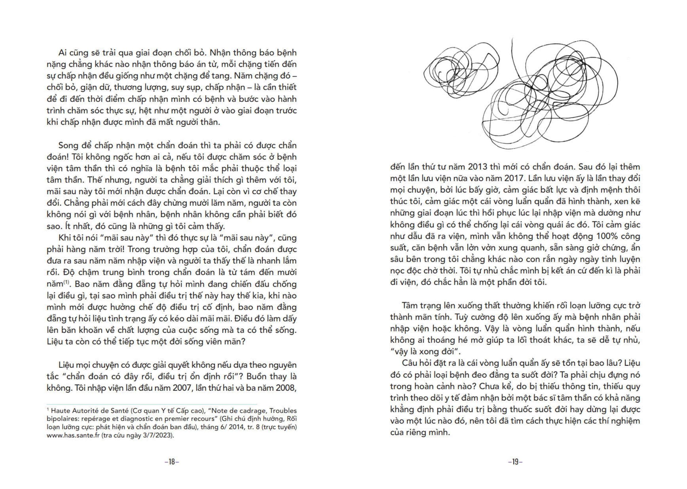 Mua tại TiktokRối Loạn Lưỡng Cực - Hành Trình Dài Chung Sống - Trò Chuyện Về Sức Khoẻ Tâm Thần - Từ Chẩn Đoán Đến Cuộc Sống Hằng Ngày Rối Loạn Lưỡng Cực - Hành Trình Dài Chung Sống là cuốn sách sống động với nhiều hình ảnh minh hoạ giúp chúng ta hiểu rõ hơn về chứng rối loạn lưỡng cực và phần nào giải đáp những băn khoăn nảy sinh: Làm cách nào để xác định rối loạn lưỡng cực? Chứng bệnh này có thể chữa khỏi được không? Cuối cùng, phải chung sống với nó ra sao? Tuy còn xa lạ với nhiều người, song rối loạn lưỡng cực lại ảnh hưởng tới từ 1 - 2,5% dân số. Dẫu vậy, khi mắc bệnh, bệnh nhân vẫn phải trải qua cuộc đấu tranh thực sự: không được thừa nhận, bị kì thị, hành trình chẩn đoán gian nan, khó khăn trong kiểm soát triệu chứng… Người rối loạn lưỡng cực thường cảm thấy cô độc và không được ai thấu hiểu. Bằng kinh nghiệm sống và hành trình y tế từng trải qua, cùng sự đồng hành của bác sĩ Céline Renouard, tác giả Fabrice Saulière đã kể lại hành trình cuộc đời của m.ình, hé lộ với chúng ta thế nào là cuộc sống thực sự của một người rối loạn lưỡng cực, đồng thời đưa ra những lời khuyên giá trị để có thể “chung sống” với rối loạn lưỡng cực tốt hơn trong cuộc sống hằng ngày.