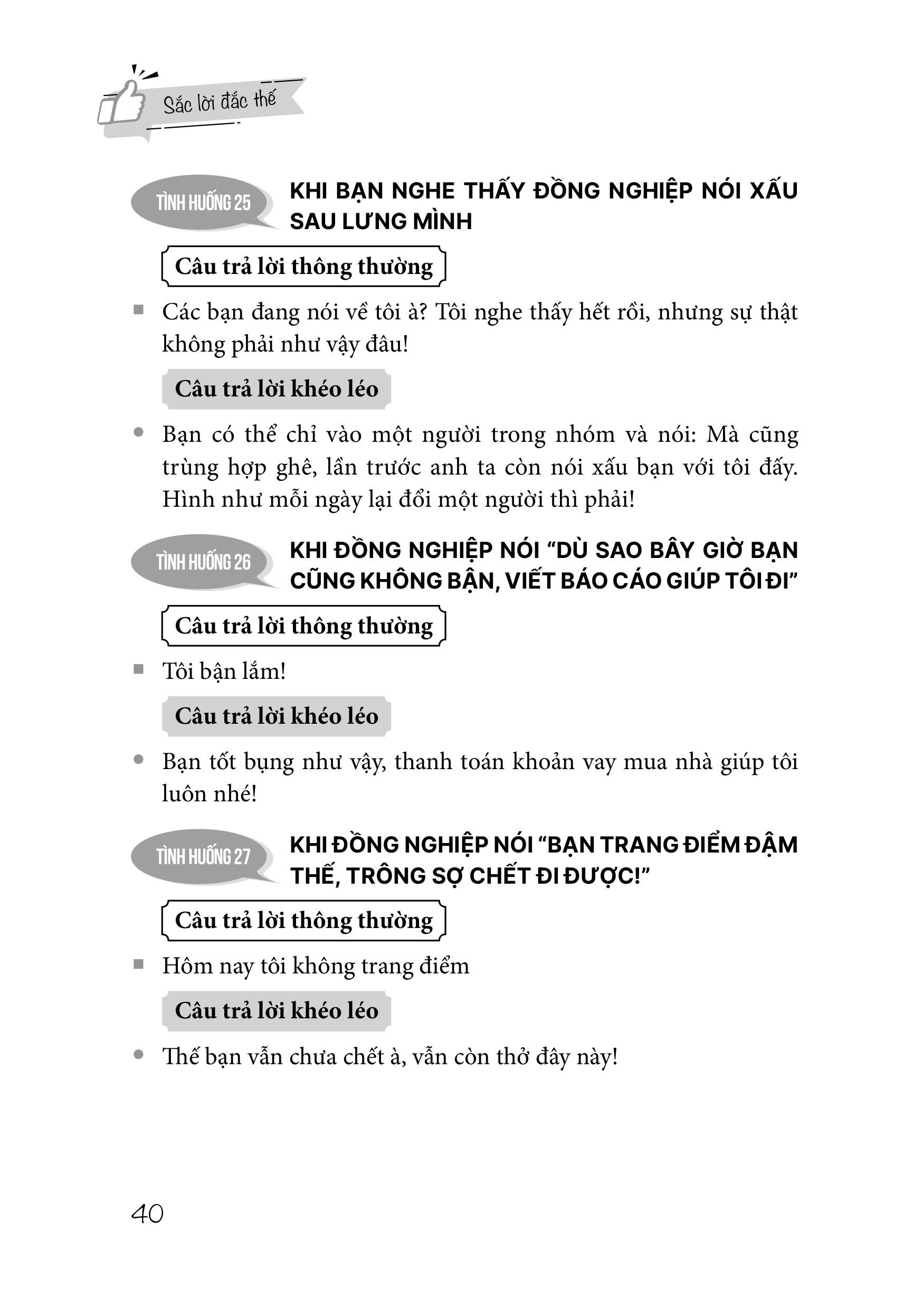 Sau khi đọc tới trang cuối cùng, bạn sẽ nắm vững khả năng ứng biến linh hoạt trong mọi cuộc đối thoại phức tạp, từ đó giành được sự tin tưởng và tôn trọng của người khác.