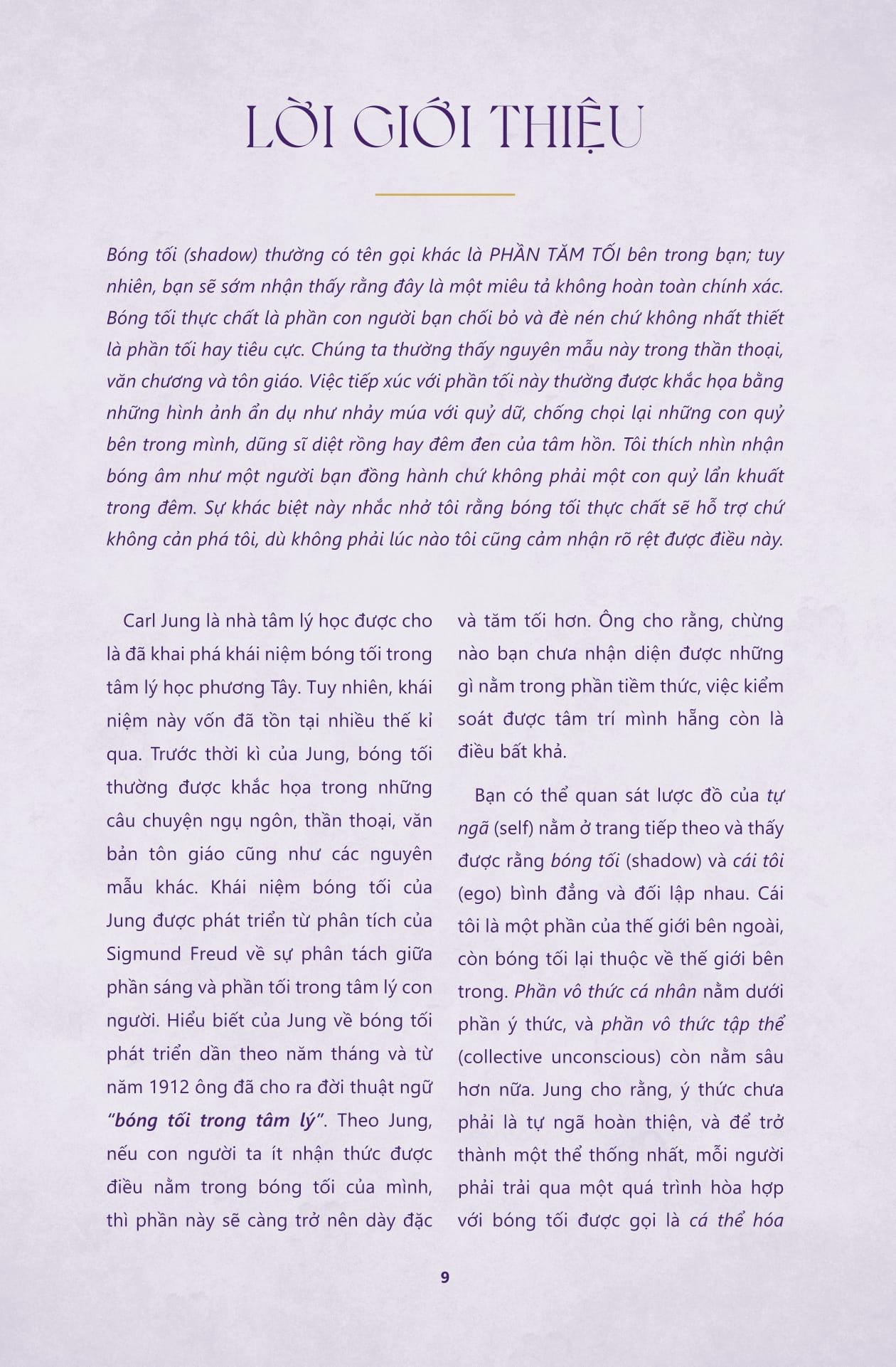 Hành trình "làm việc với bóng tối" (Shadow Work) là một quá trình khám phá và hòa giải với những khía cạnh ẩn sâu bên trong con người, nơi bạn đối mặt với những tổn thương, nỗi đau từ quá khứ để giải phóng bản thân và hướng tới sự cân bằng, lành mạnh hơn. Trong cuốn SHADOW WORK – Sách hướng dẫn giải mã bản ngã ẩn giấu và cân bằng năng lượng, tác giả Stephanie Kirby khuyến khích chúng ta can đảm đối diện với cả ánh sáng lẫn bóng tối bên trong m.ình. Thông qua việc chấp nhận trọn vẹn con người thật, bạn sẽ tìm thấy sự hòa hợp sâu sắc và sự bình yên trong tâm hồn.