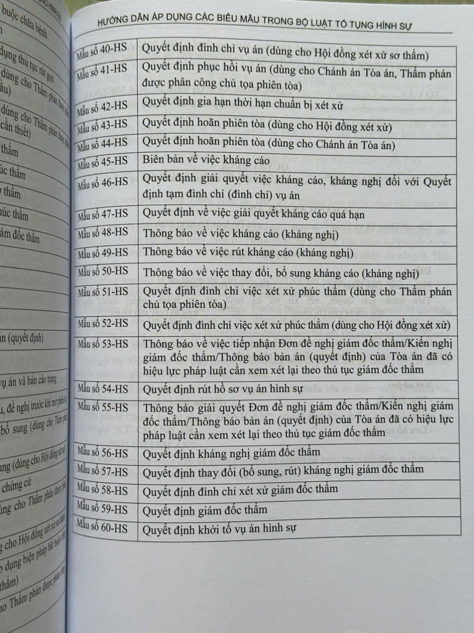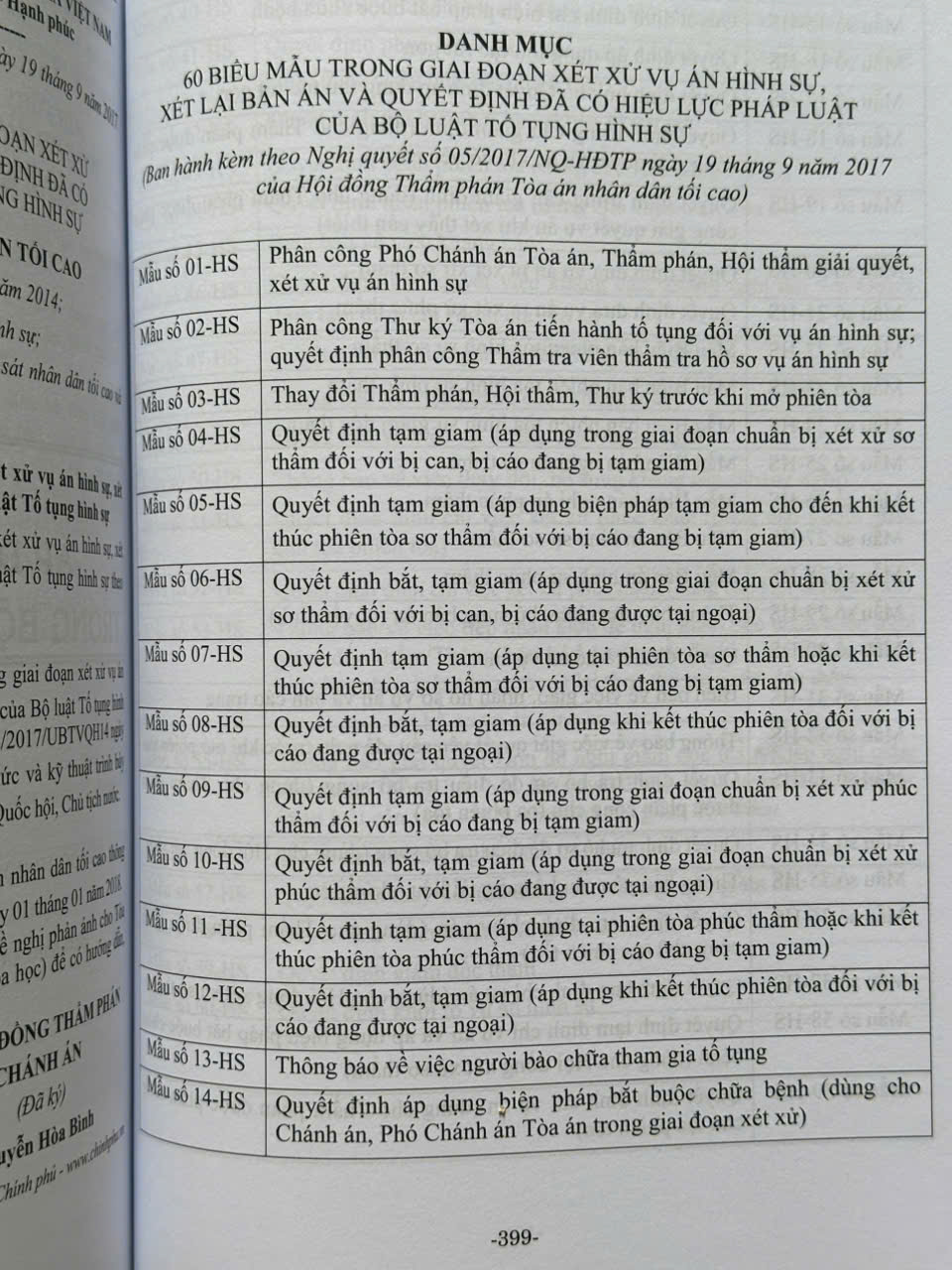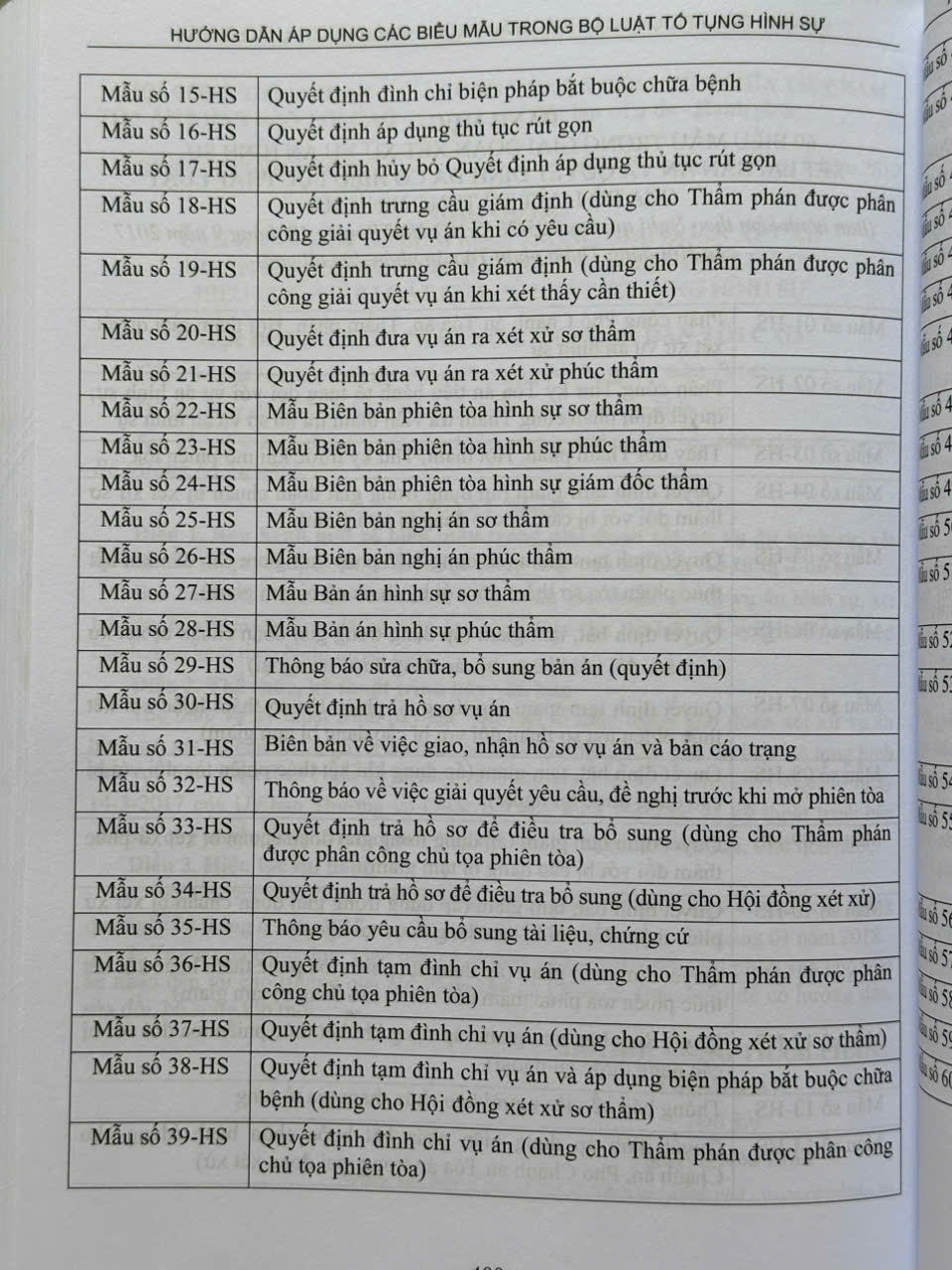 Ngoài ra cuốn sách còn in các biểu mẫu trong Bộ luật Tố tụng hình sự để bạn đọc thuận tiện hơn trong việc tham khảo và áp dụng.