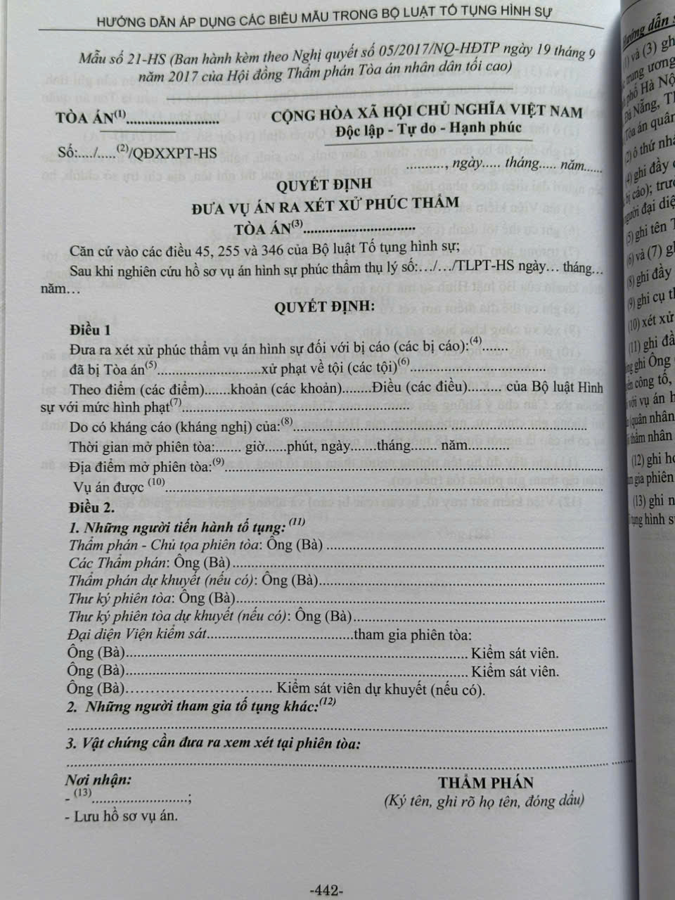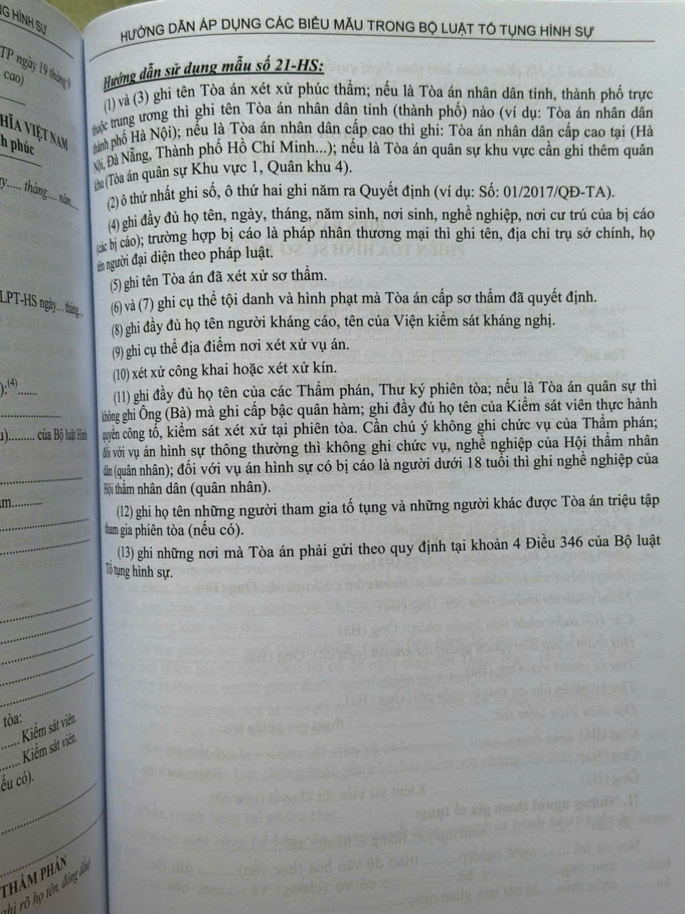 Phần II. Hướng dẫn áp dụng các biểu mẫu trong Bộ luật Tố tụng hình sự