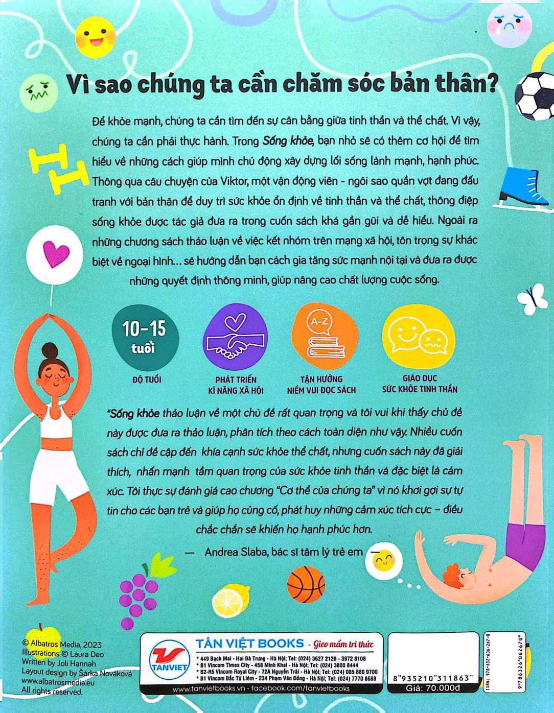 Để khỏe mạnh, chúng ta cần tìm đến sự cân bằng giữa tinh thần và thể chất. Vì vậy, chúng ta cần phải thực hành. Trong Sống khỏe, bạn nhỏ sẽ có thêm cơ hội để tìm hiểu về những cách giúp m.ình chủ động xây dựng lối sống lành mạnh, hạnh phúc. Thông qua câu chuyện của Viktor, một vận động viên - ngôi sao quần vợt đang đấu tranh với bản thân để duy trì sức khỏe ổn định về tinh thần và thể chất, thông điệp sống khỏe được tác giả đưa ra trong cuốn sách khá gần gũi và dễ hiểu.