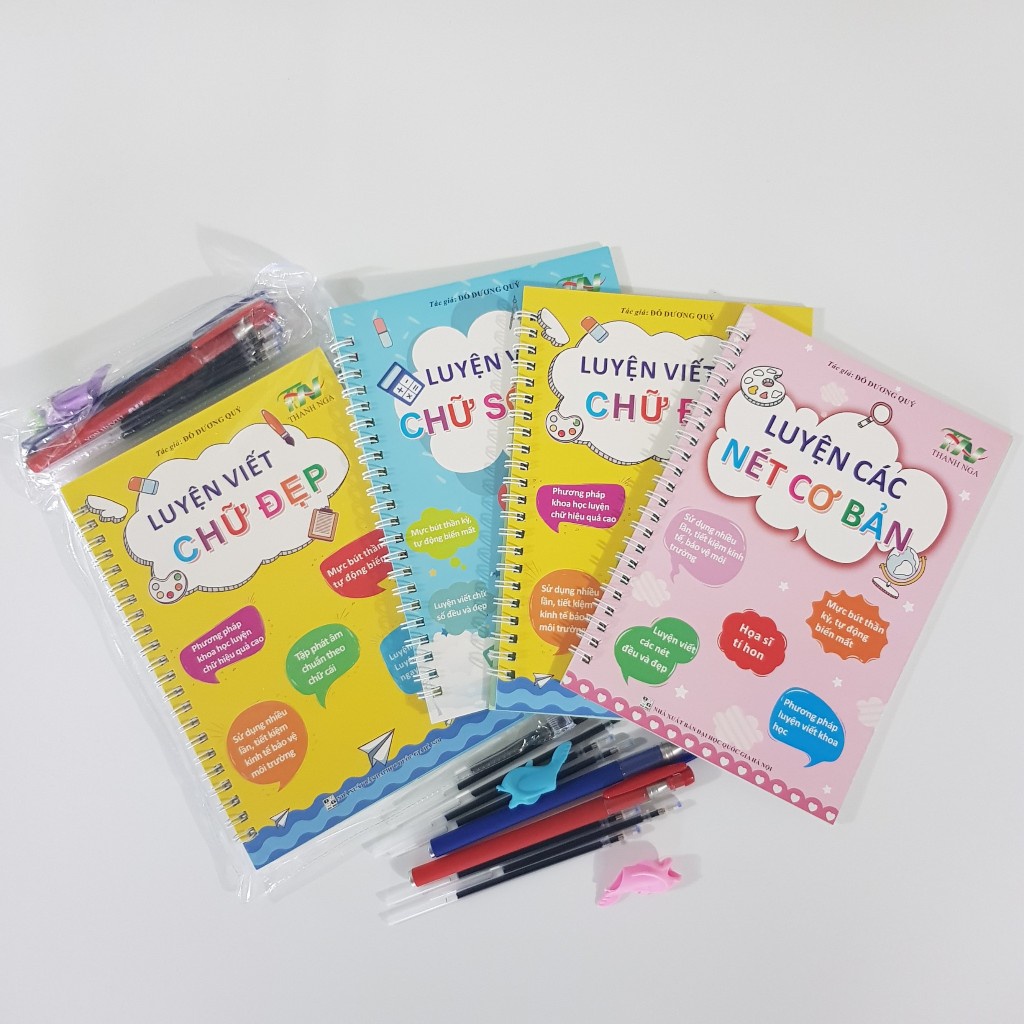 Sét 3 Vở Tập Tô Tự Xóa Thông Minh Tặng Kèm Bút, Combo 3 Vở Luyện Viết Chữ Số Nét Cơ Bản Đẹp Thần Kỳ