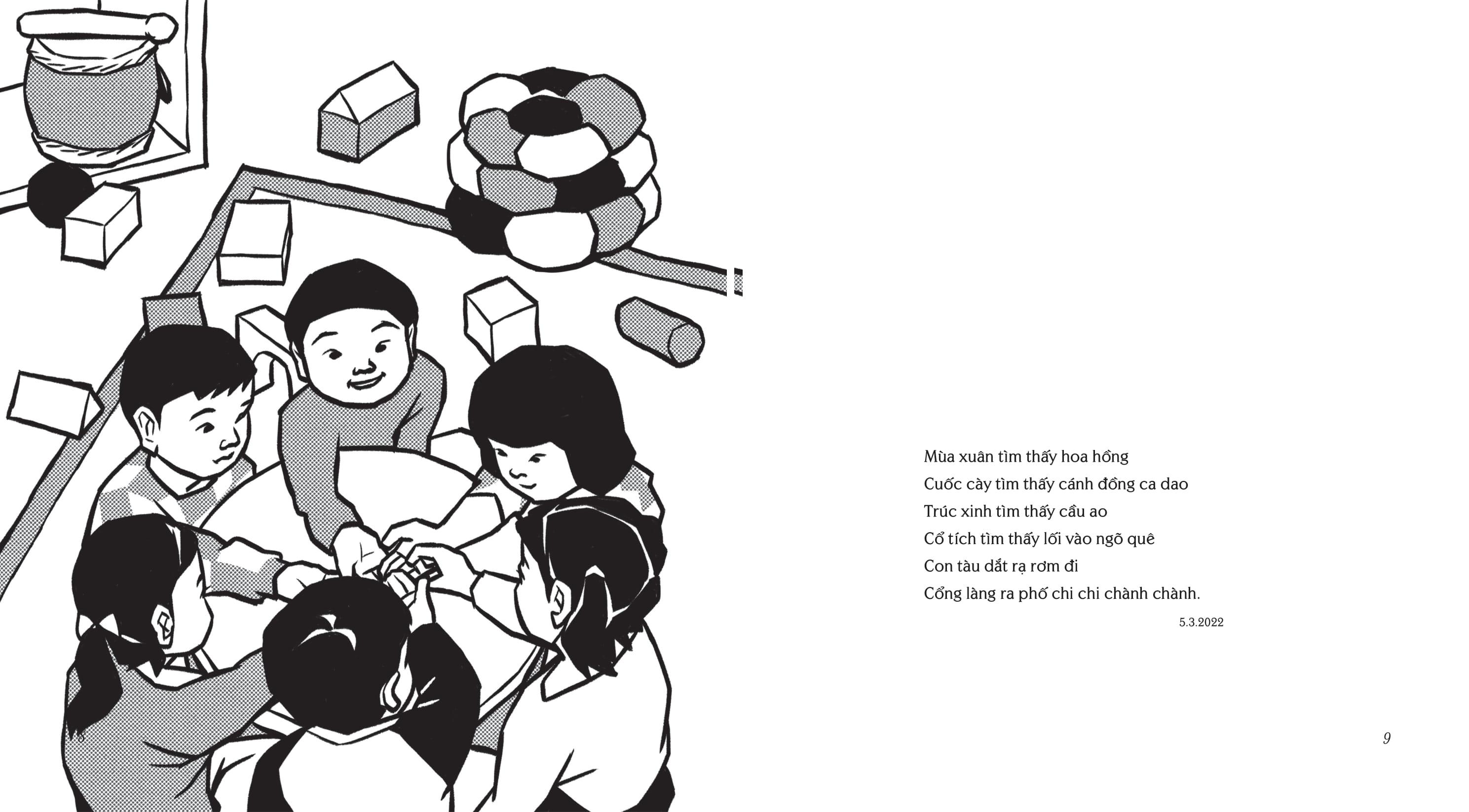 Đồng Dao Cổ Tích - Sách Song Ngữ Việt-Anh Cuốn sách kể về hành trình đi lạc vào thế giới siêu thực của hai chị em Thi Ca và Thi Họa. Đó là nơi của
