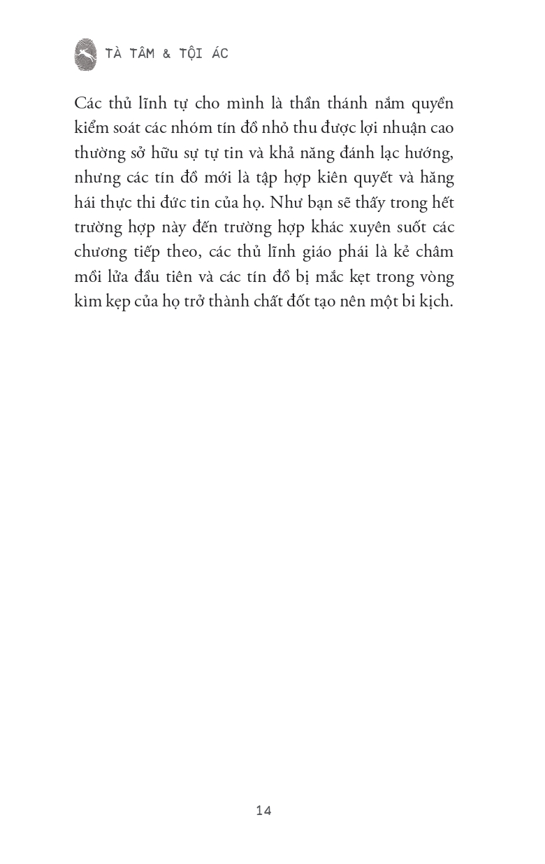 Với văn phong trực diện, giàu dữ liệu và phân tích sắc lạnh, Tà Tâm & Tội Ác không chỉ phù hợp với độc giả yêu thích điều tra, tội phạm, mà còn là tài liệu tham khảo thiết yếu cho những ai quan tâm đến tâm lý học tội phạm, hành vi cực đoan và cơ chế của thao túng xã hội.