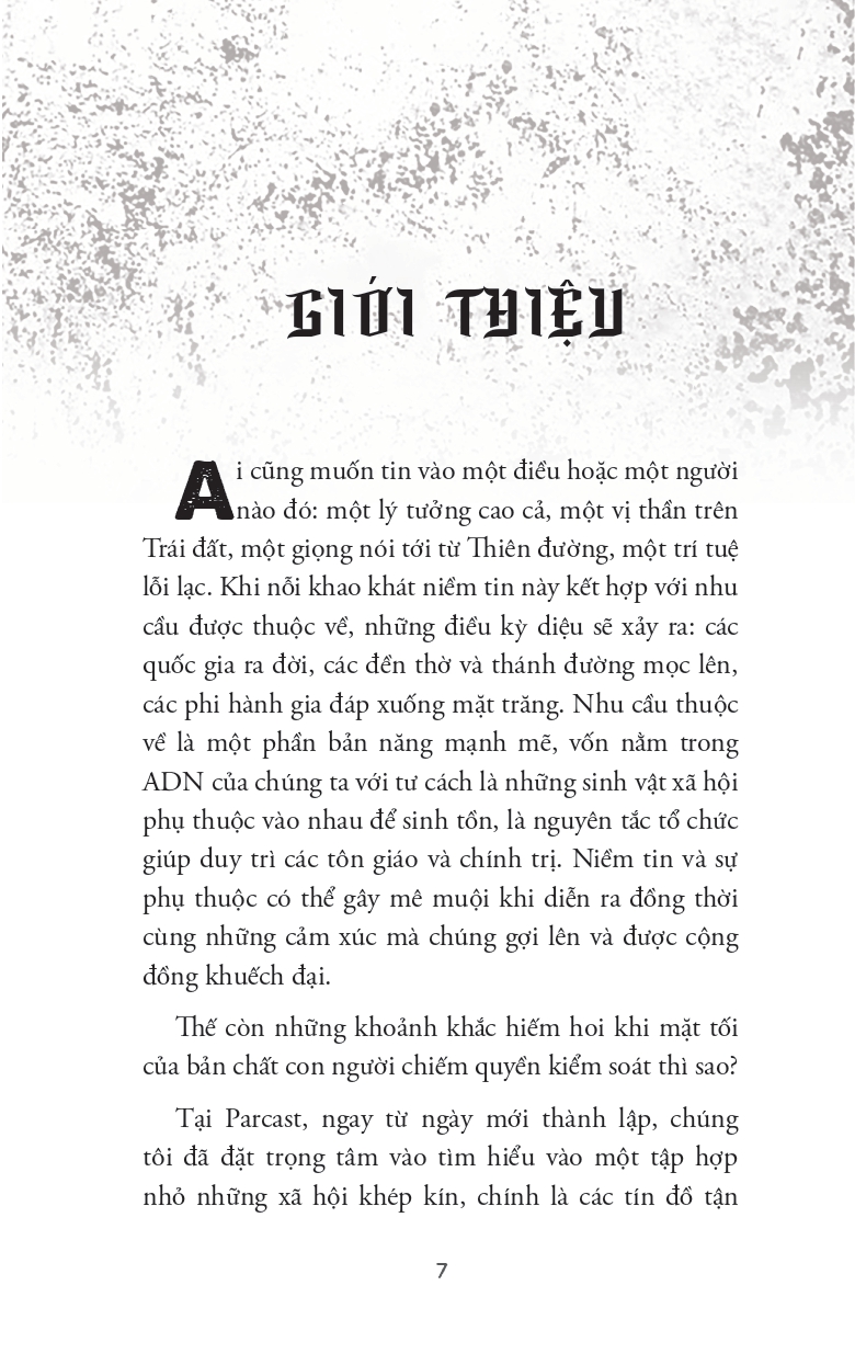 Cuốn sách được xây dựng dựa trên loạt podcast nổi tiếng Cults của Parcast – một trong những podcast dẫn đầu về đề tài giáo phái và tội phạm tâm lý học. Dưới góc nhìn cận tâm lý học và kể chuyện điều tra, Max Cutler và Kevin Conley tái hiện từng chi tiết trong cuộc đời và hành vi của các nhân vật như Charles Manson, Jim Jones, Keith Raniere, David Koresh,… những cái tên khiến cả thế giới rúng động bởi sự tàn nhẫn và khát vọng quyền lực không giới hạn.