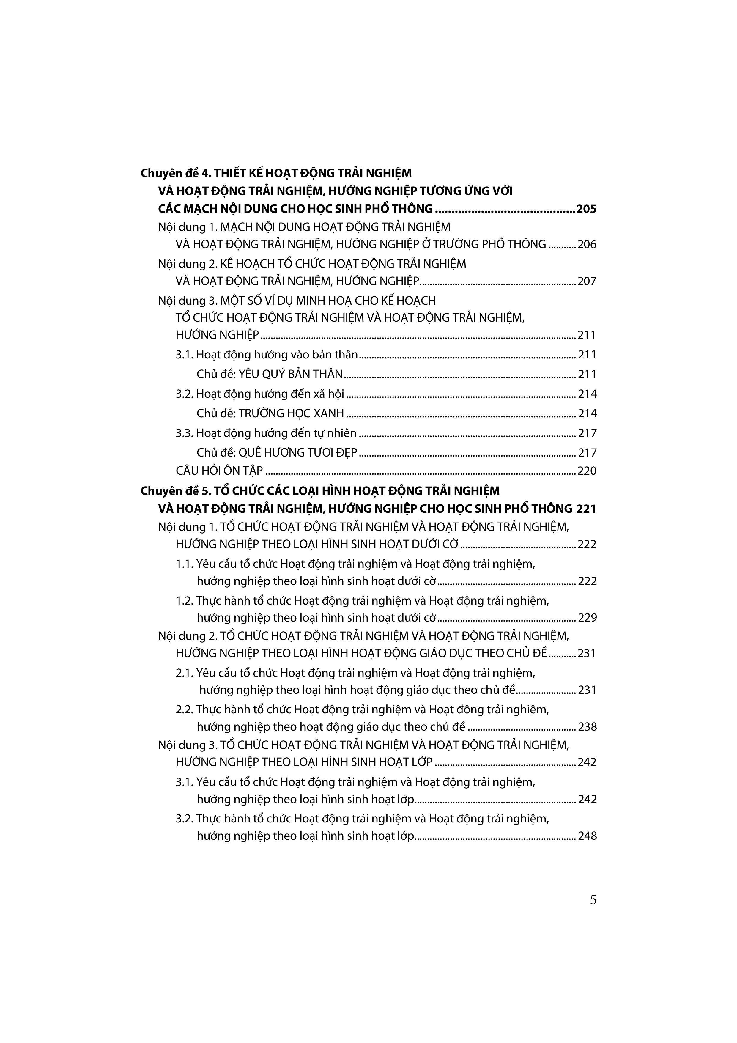 Hoạt động trải nghiệm và Hoạt động trải nghiệm, hướng nghiệp góp phần hình thành, phát triển các phẩm chất chủ yếu, năng lực chung và các năng lực đặc thù cho học sinh. Các nội dung hoạt động được xây dựng dựa trên các mối quan hệ của cá nhân học sinh với bản thân, với xã hội, với tự nhiên và với nghề nghiệp.