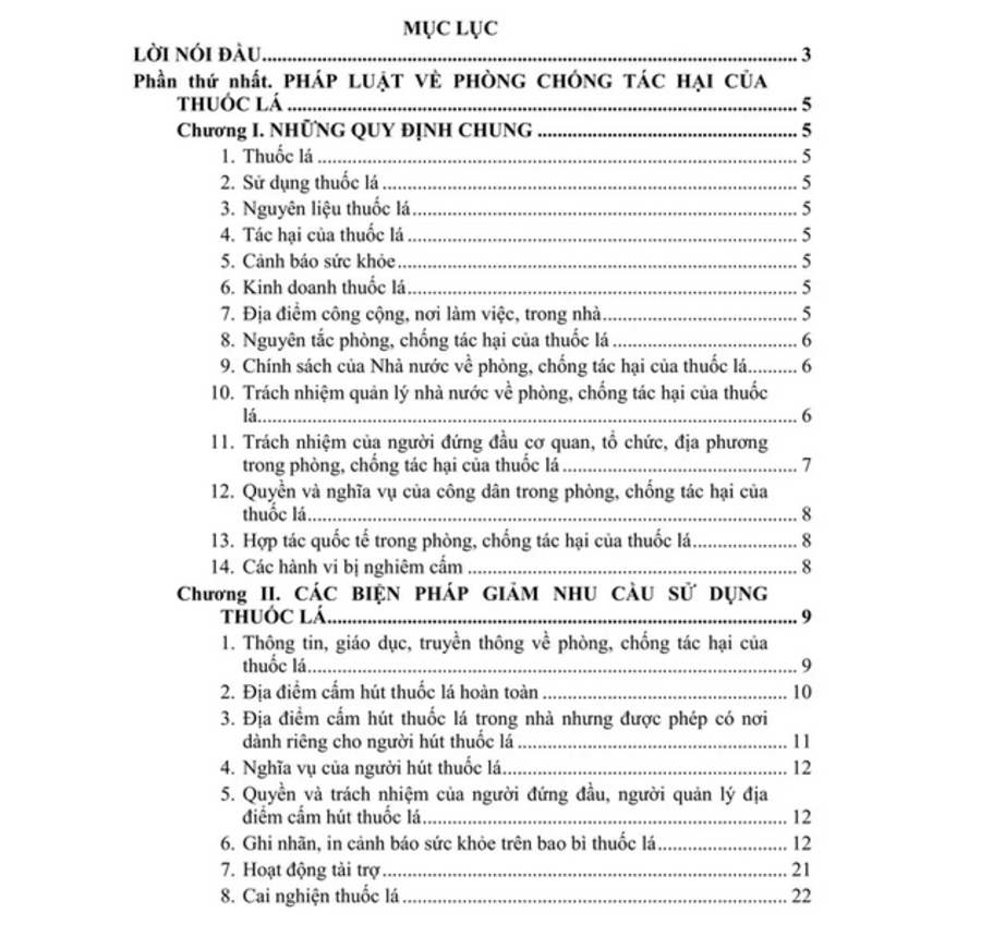 Phần thứ nhất. PHÁP LUẬT VỀ PHÒNG CHỐNG TÁC HẠI CỦA THUỐCLÁ
