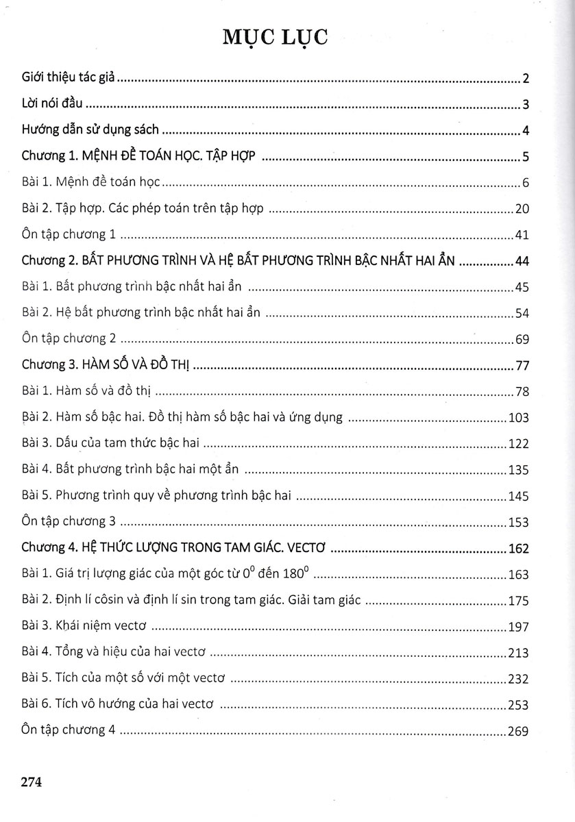 1. Nội dung sách Tự học Toán học lớp 10: Tập 1: - Chương 1: Mệnh đề và tập hợp (5 chủ đề) - Chương 2: Bất phương trình - Hệ bất phương trình (4