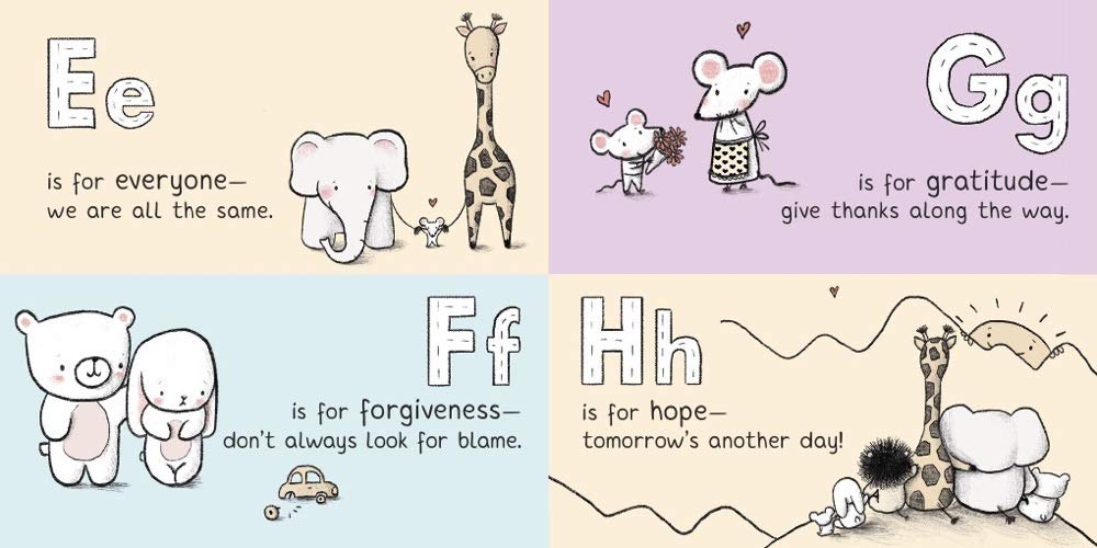 This cute board book has a cast of animal characters and gentle rhyming text, showing us all the ways in which we can be kind to one another - from A to Z!