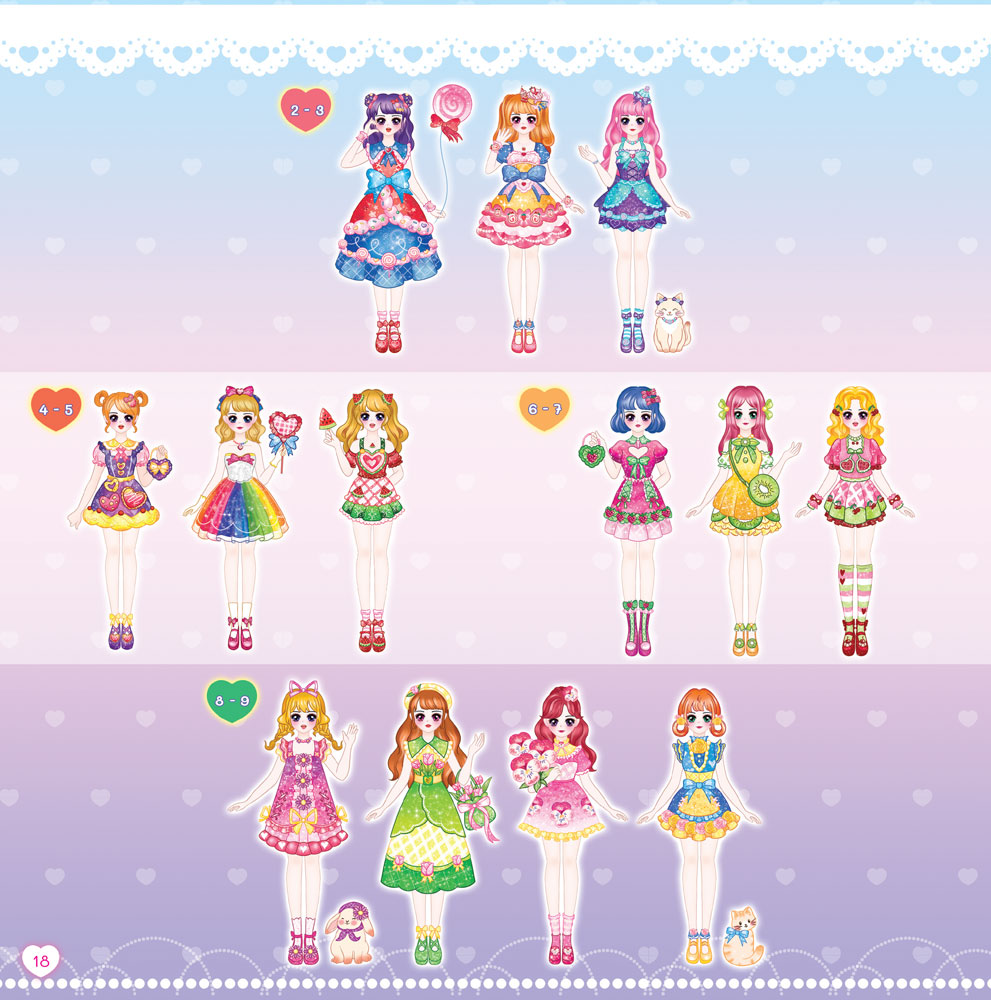 - Hơn 90 Stickers gồm trang phục, phụ kiện cùng những bối cảnh lung linh rực rỡ biến các con trở thành nhà thiết kế thời trang, có thể thỏa sức sáng tạo bằng sự hiểu biết và nhận thức riêng của mình.