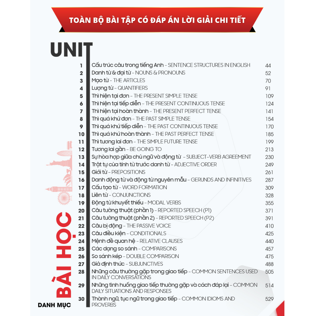 Các chủ điểm ngữ pháp Tiếng Anh cơ bản , cô đọng , dễ hiểu , dễ nhớ -Bài tập thực hành đa dạng kèm hình ảnh minh họa sinh động -Làm chủ ngữ pháp