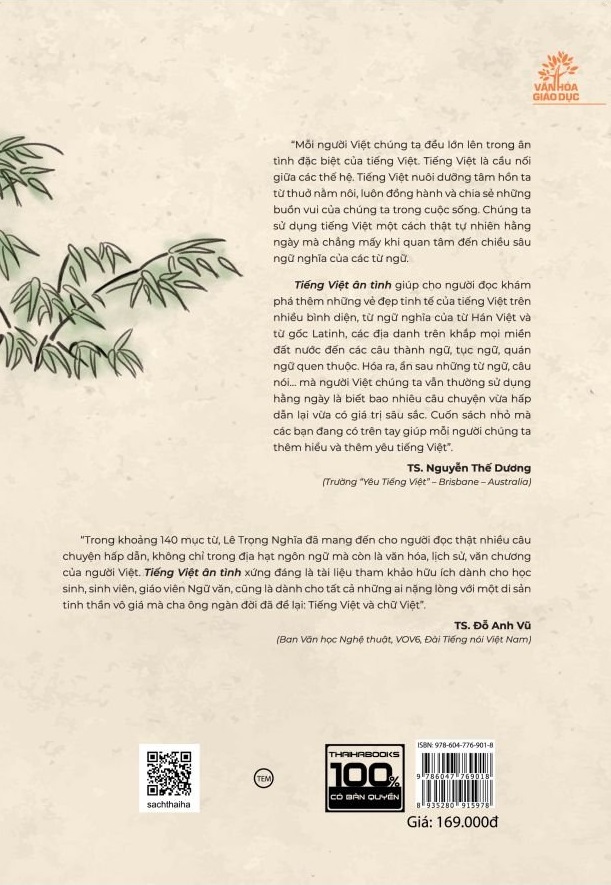 TIẾNG VIỆT ÂN TÌNHLê Trọng Nghĩa (chủ biên)Khi nhắc tới “ngôn ngữ học”, chúng ta dễ hình dung đến những khái niệm hàn lâm như “hình thái học”, “tu từ”, “âm vị”, “phân tích di...