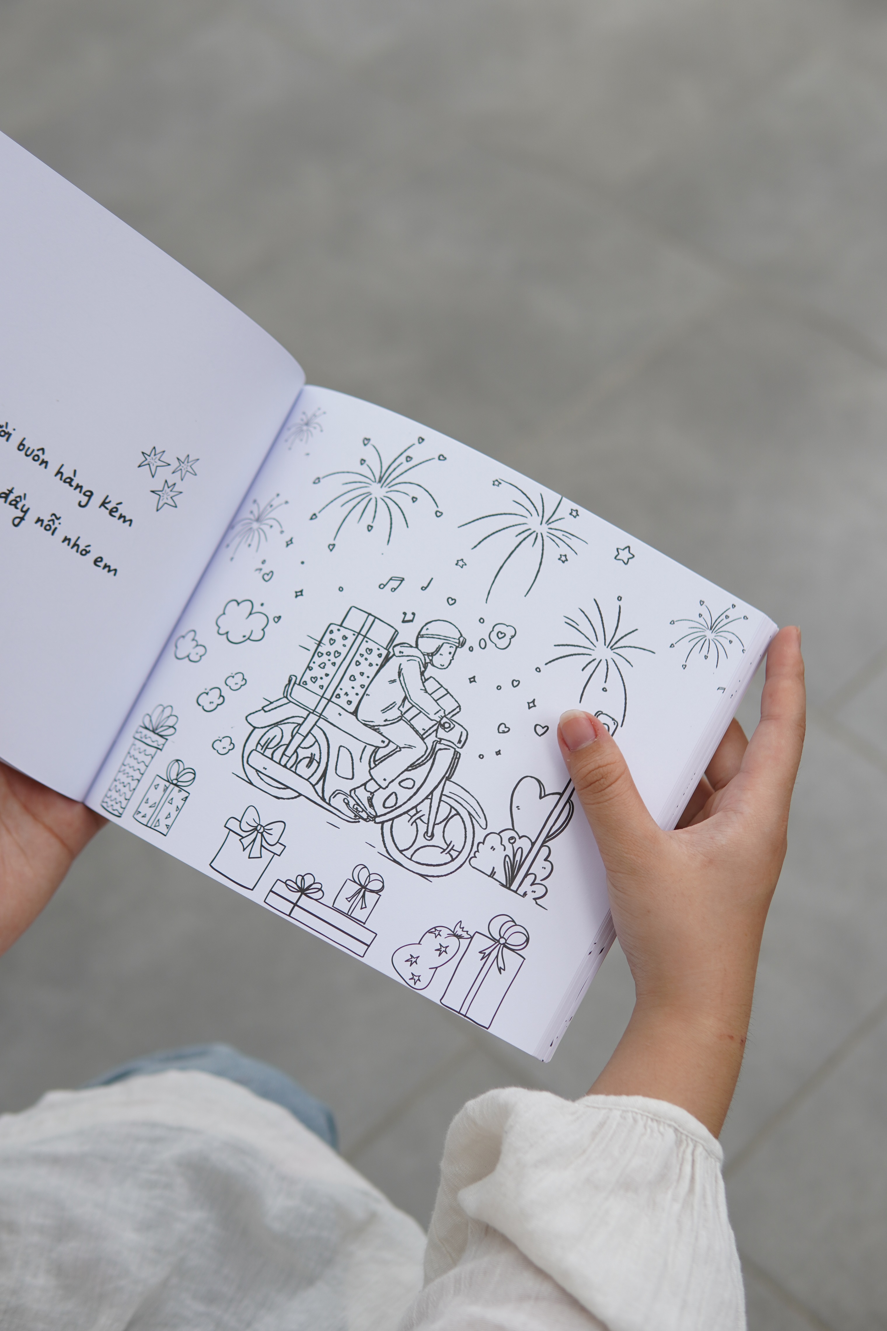 Đi kèm với những màn chơi chữ thả thính đỉnh nóc, kịch trần là những bức tranh hài hước, tinh nghịch để bạn tô màu.