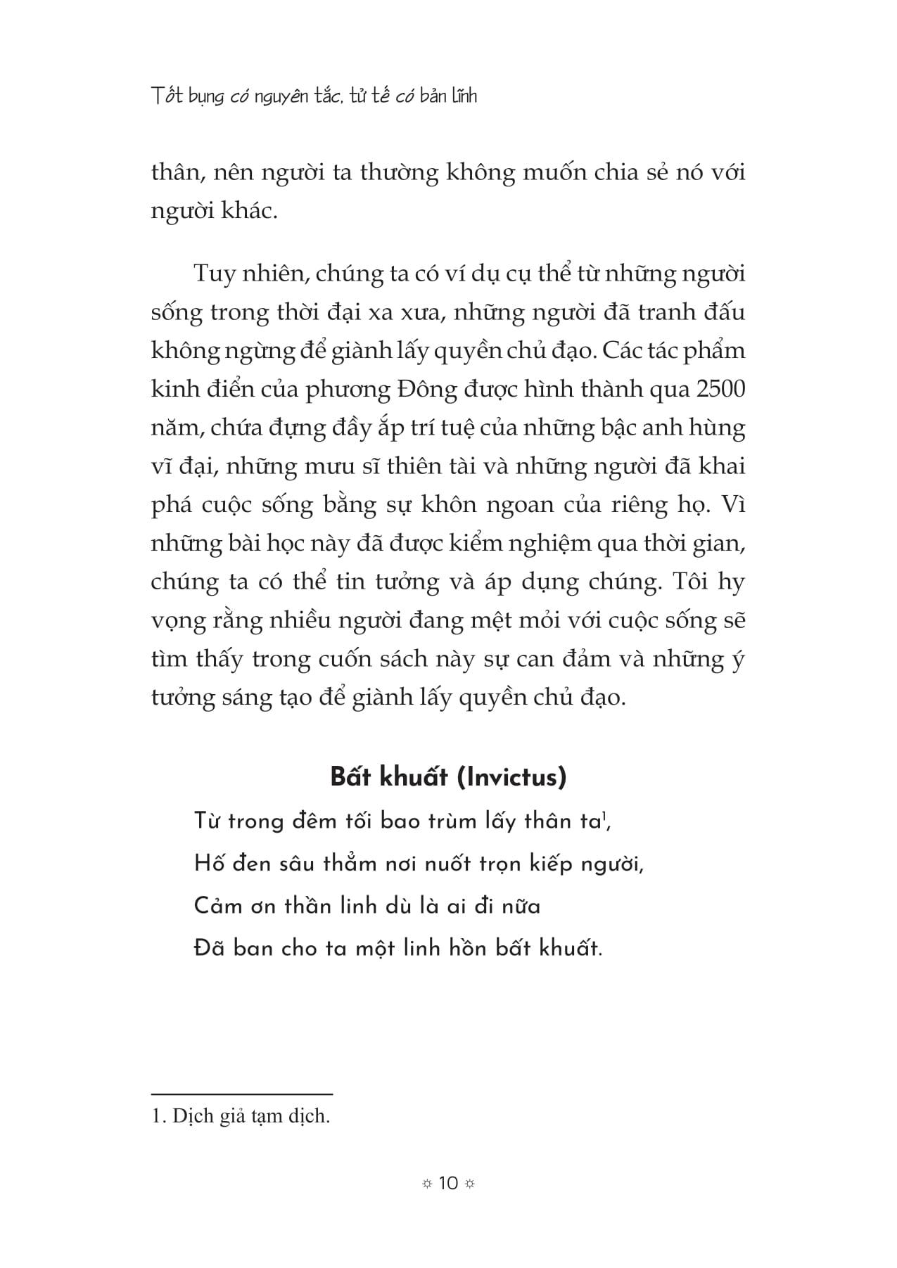 Cuốn sách “Tốt bụng có nguyên tắc, tử tế có bản lĩnh - Tinh hoa ứng xử từ 2.500 năm kinh điển Đông phương” là chiếc la bàn ứng xử, chắt lọc tinh hoa trí tuệ Đông phương suốt 2.500 năm – giúp bạn sống chân thành mà không mềm yếu, biết cảm thông nhưng vẫn giữ vững bản lĩnh.