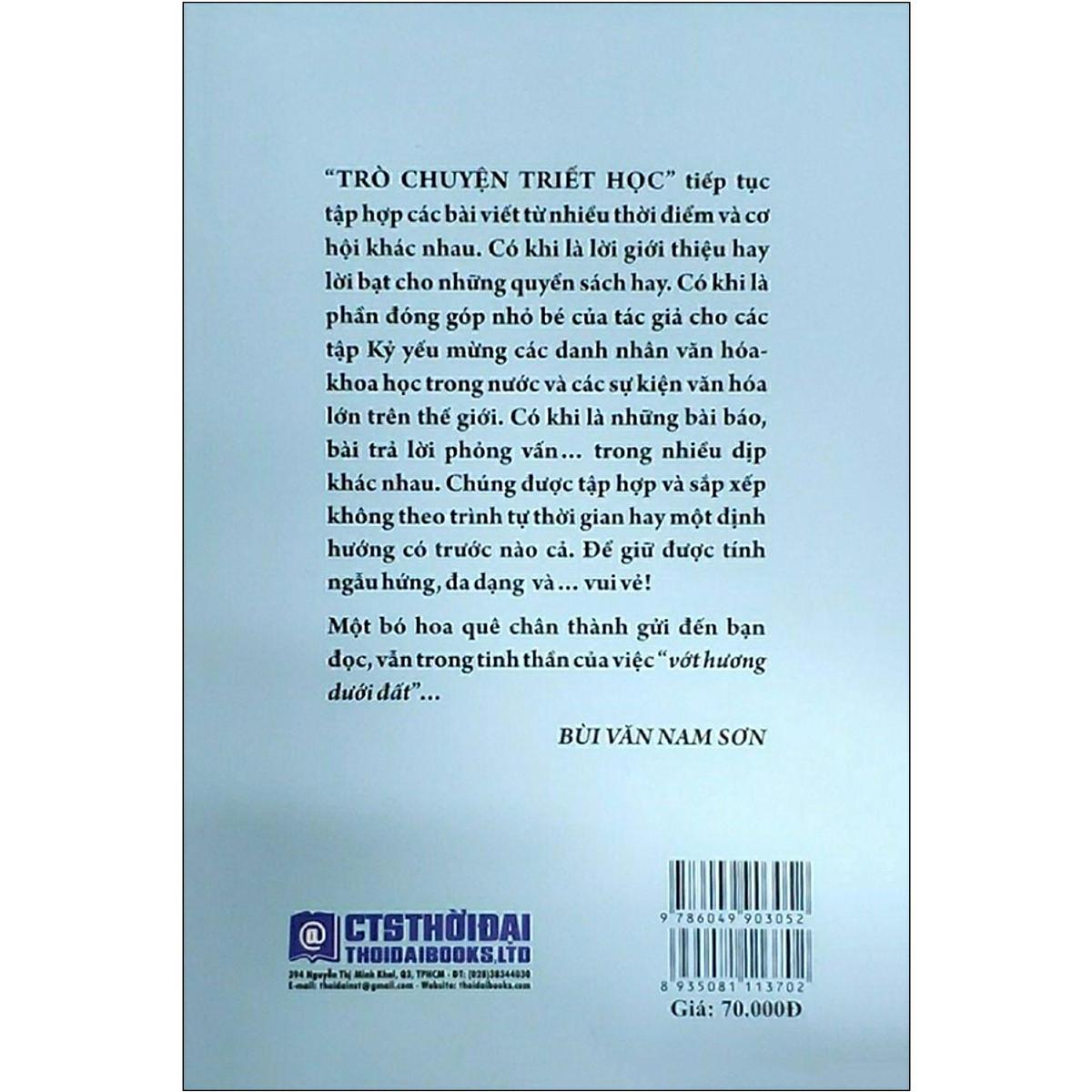 Trò Chuyện Triết Họclà tập hợp 92 bài viết của nhà nghiên cứu triết học Bùi Văn Nam Sơn, đăng trên báo Sài Gòn Tiếp Thị gần 2 năm (25.5.2010 – 16.4.2012).