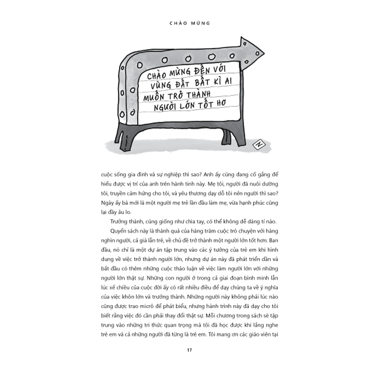 Cuốn sách “Trở thành người lớn tốt hơn” gồm ba phần với 15 chương, mỗi chương chính là một câu chuyện trong chuyến Hành trình Lắng nghe ấy.