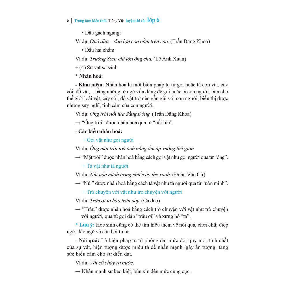 Trọng tâm kiến thức tiếng Việt luyện thi vào lớp 6