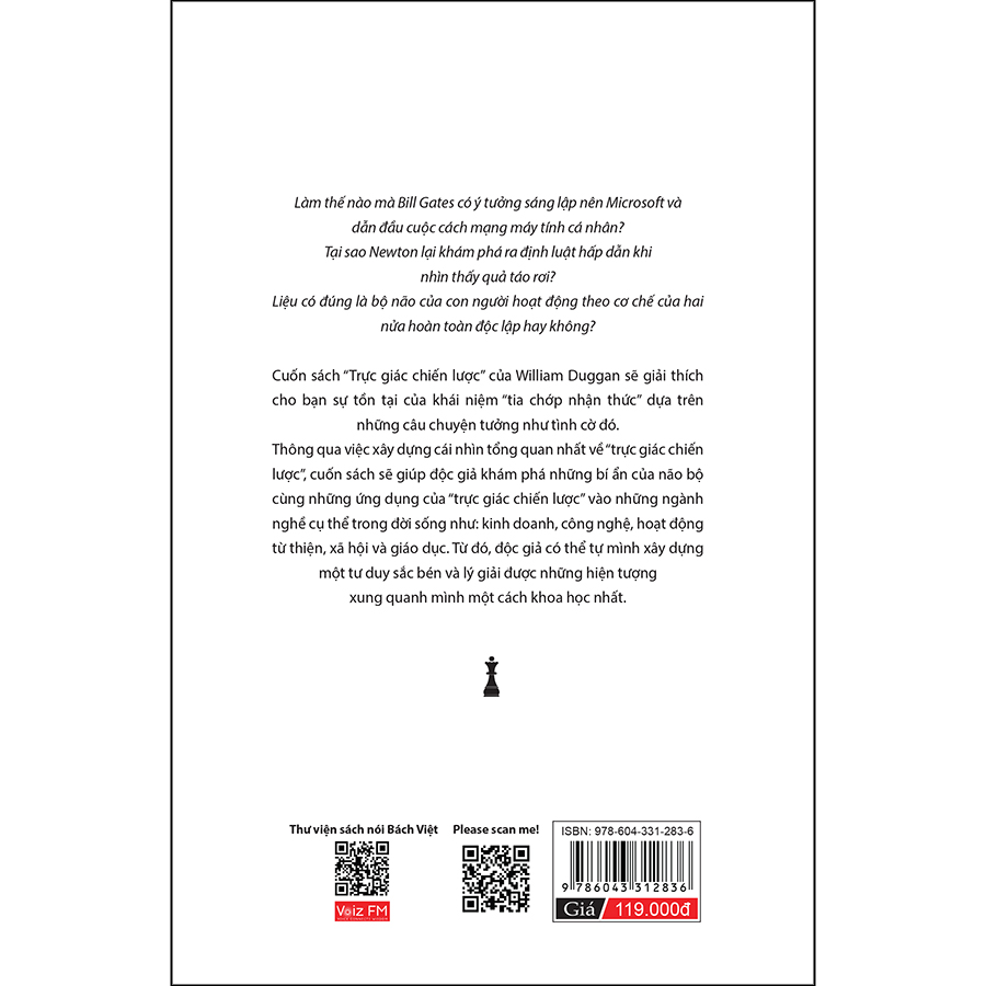 Thông qua việc xây dựng cái nhìn tổng quan nhất về “trực giác chiến lược”, cuốn sách sẽ giúp độc giả khám phá những bí ẩn của não bộ cùng những ứng dụng của “trực giác chiến lược” vào những ngành nghề cụ thể trong đời sống như: kinh doanh, công nghệ, hoạt động từ thiện, xã hội và giáo dục. Từ đó, độc giả có thể tự mình xây dựng một tư duy sắc bén và lý giải được những hiện tượng xung quanh mình một cách khoa học nhất.