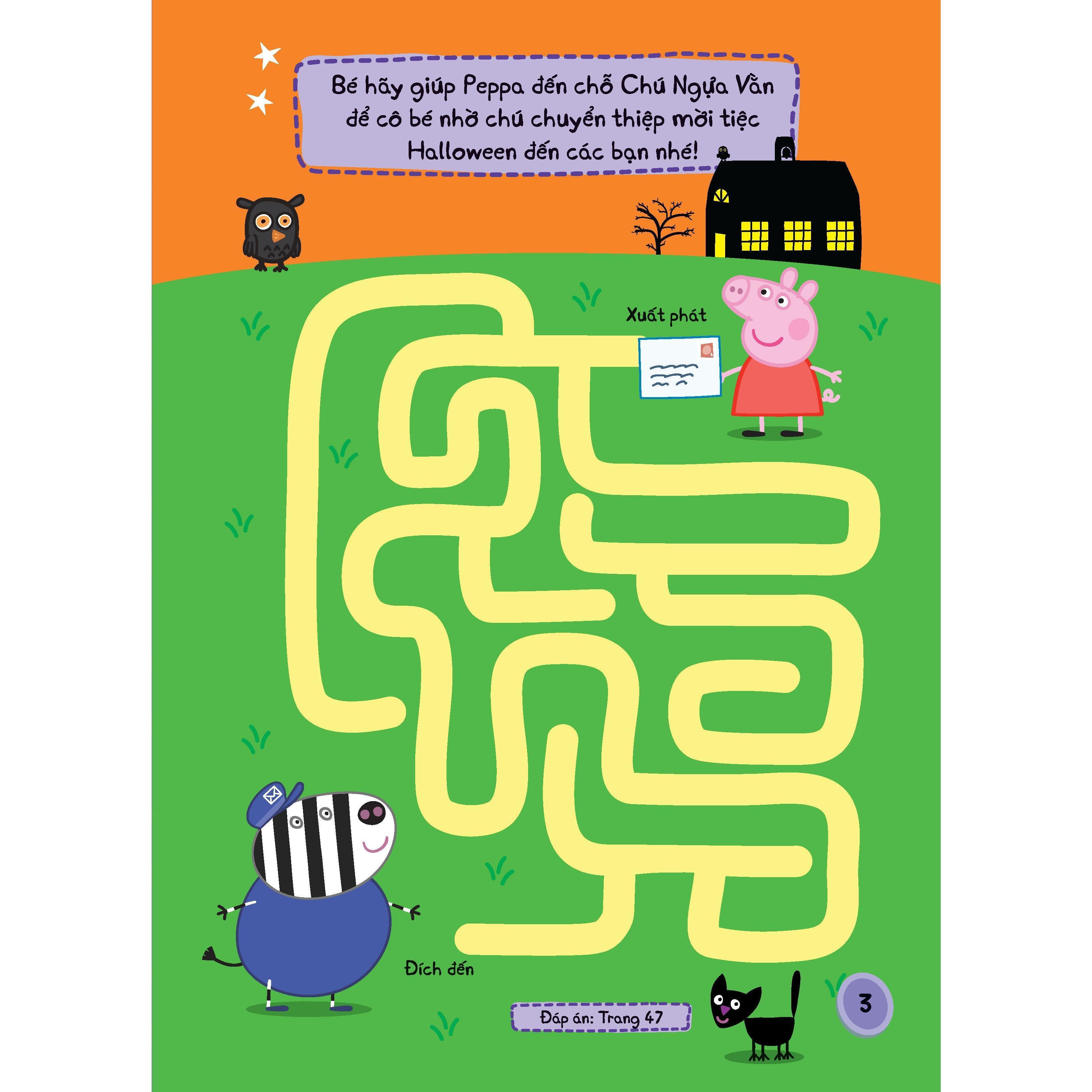 Halloween đã đến rồi. Bé hãy cùng Peppa, George tô màu, tham gia các hoạt động, dán sticker trang trí để chào mừng ngày lễ này nhé! Bé đừng quên gửi tặng người thân, bạn bè những tấm thiệp Halloween ấn tượng đấy.
