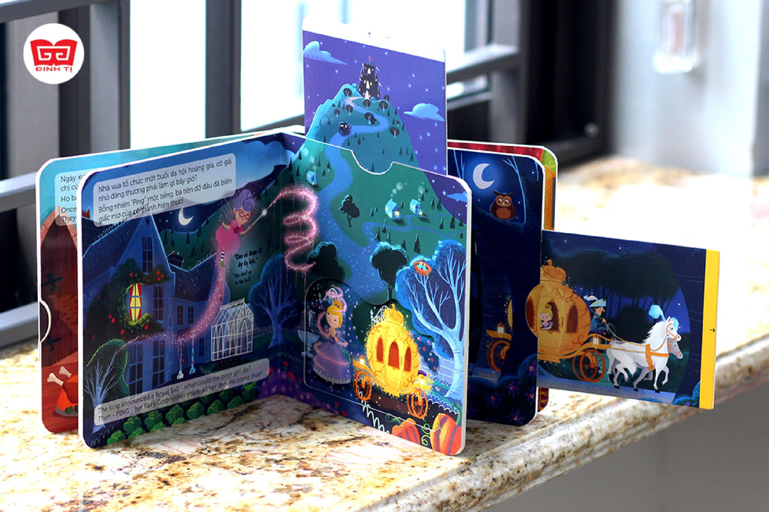 Bộ sách chuyển động đa tương tác phỏng theo truyện cổ tích Cô bé Lọ Lem mà bé vẫn yêu thích.