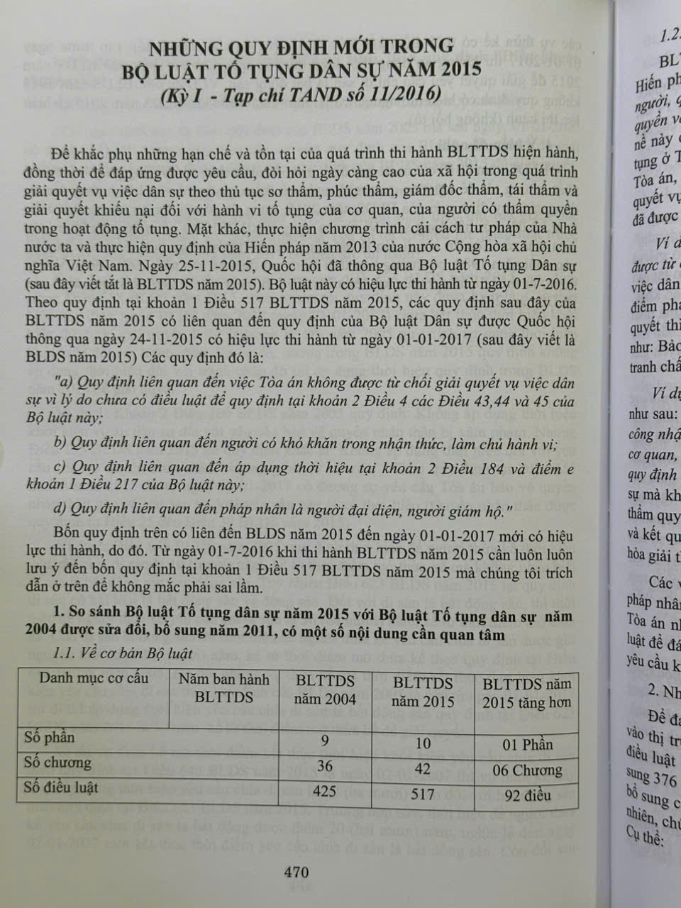 Bình Luận Khoa Học Bộ Luật Tố Tụng Hình Sự Năm 2015 (Tái Bản) Bộ luật tố tụng hình sự 2015 được Quốc hội thông qua ngày 27-11-2015, có hiệu lực từ ngày 1-1-2018. Việc