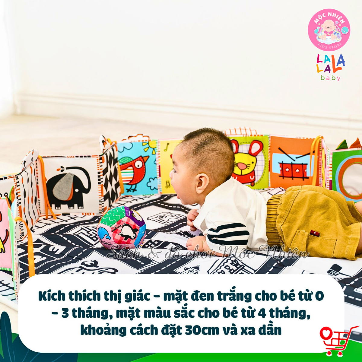 Tranh Vải Kích Thích Thị Giác Cho Bé Sơ Sinh, Phát Triển Não Bộ Tummy Time - Lalala Baby Sách vải lật mở đa tương tác Lalala baby, made in Việt Nam - Chất
