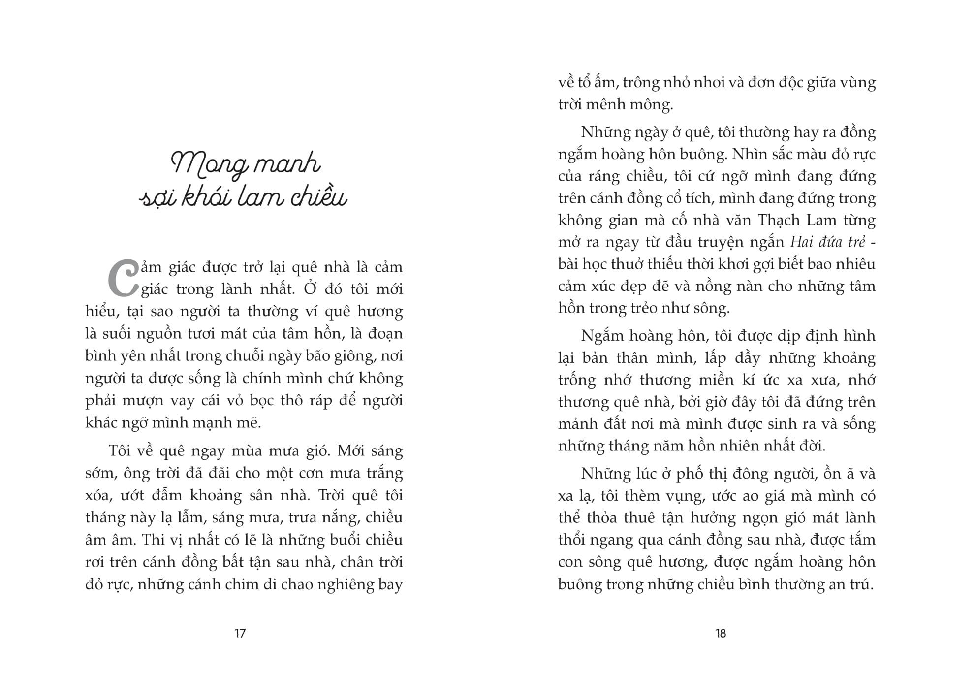 Chúng ta bước ra từ một vùng trời trong xanh, vùng trời quê hương, với biết bao kỉ niệm yên lành, dung dị. Nơi ta từng khóc, cười, thổn thức vì tiếng gà ban trưa, thả hồn theo con diều no gió trên cánh đồng thoảng mùi khói chiều rơm rạ.