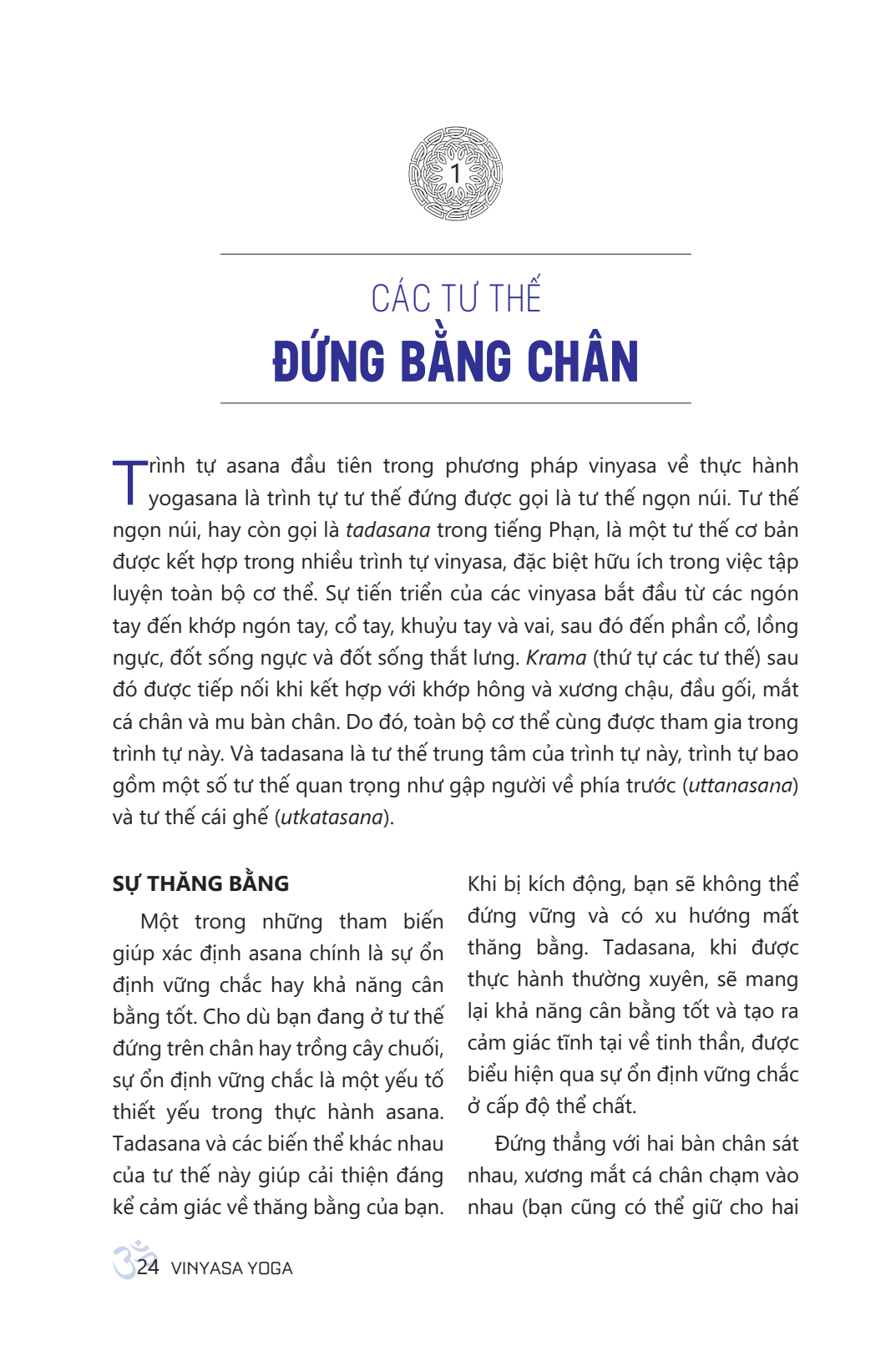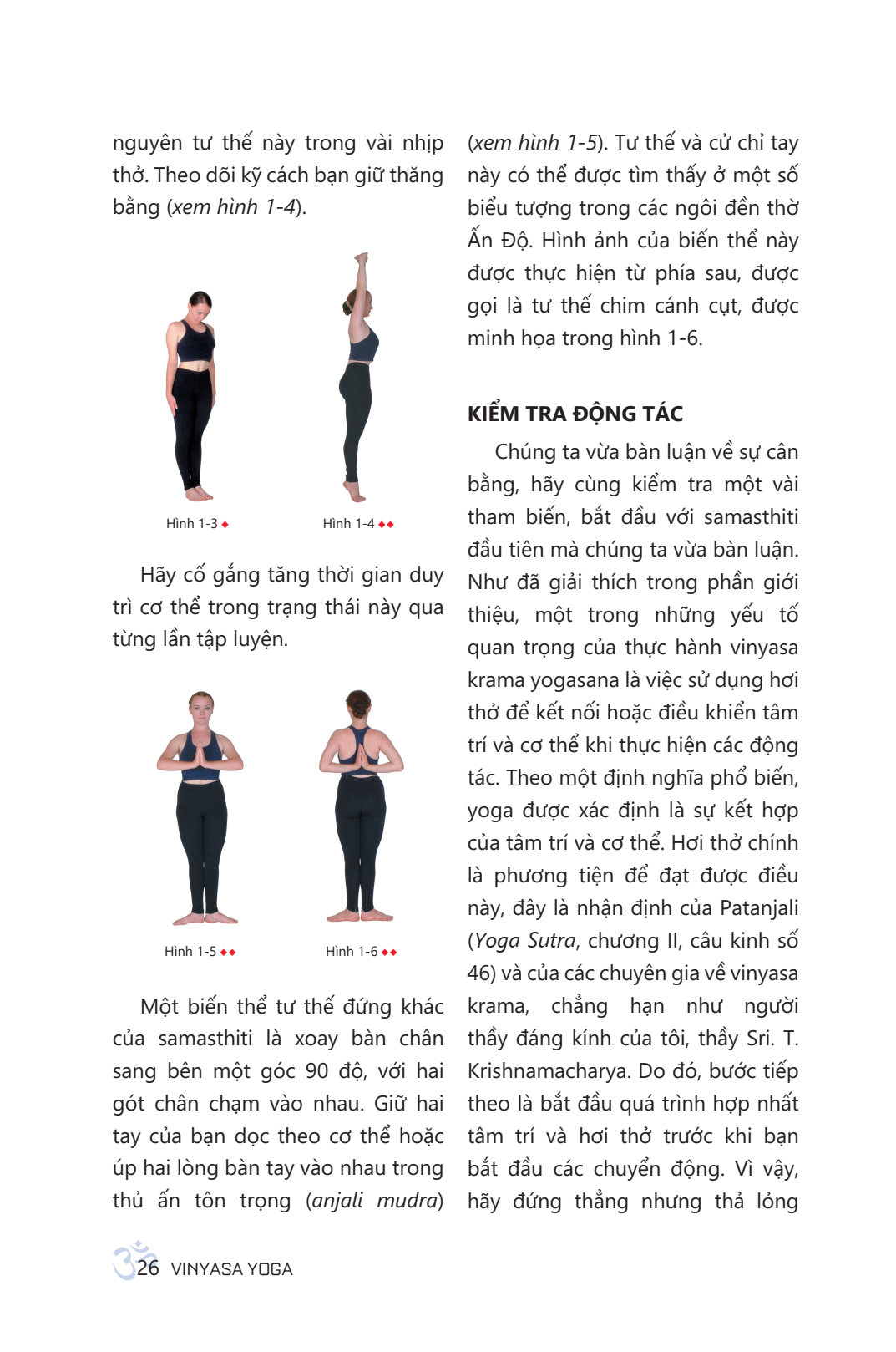Phần mở đầu của sách là những chia sẻ của tác giả về quá trình 33 năm học tập dưới trướng T. Krishnamacharya, người sáng tạo ra trường phái Vinyasa yoga, và cùng với những chia sẻ cá nhân của ông sau hơn hai thập kỷ làm việc dưới cương vị giáo viên Yoga. Sau đó chúng ta đến nội dung chính của cuốn sách là 12 chương tương ứng cho 12 trình tự động tác cùng với 1000 ảnh màu minh họa rõ nét động tác và quy trình thở dưới những lời hướng dẫn chi tiết của tác giả.