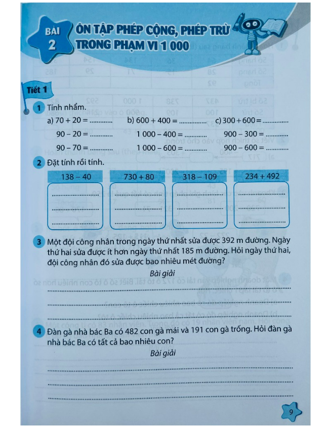 Toán Lớp 3 Kết Nối Tri Thức Vở thực hành tập 1 bài 2 - ÔN TẬP PHÉP CỘNG PHÉP TRỪ TRONG PHẠM VI 1000