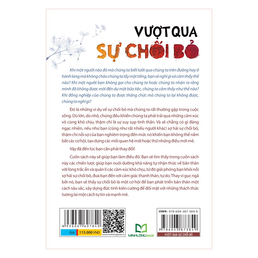 Đó là những ví dụ về sự chối bỏ mà chúng ta rất thường gặp trong cuộc sống. Dù lớn, dù nhỏ, chúng đều khiến chúng ta phải trải qua những cảm xúc vô cùng khó chịu, thậm chí là sự suy sụp tinh thân. Và sẽ chẳng có gì đáng ngạc nhiên, nếu như bạn (cũng như rất nhiều người khác) sợ hãi sự chối bỏ, thậm chí nỗi sự của bạn nghiêm trọng đến mức nó khiến bạn không thể nắm bắt cơ hội, tạo dựng các mối quan hệ mới hoặc thử những điều mới mẻ.   Vậy đã đến lúc bạn thay đổi! Cuốn sách này sẽ giúp bạn làm điều đó. Bạn sẽ tìm thấy trong cuốn sách này các chiến lược giúp bạn nuôi dưỡng khả năng tự nhận thức về bản thân với lòng trắc ẩn và quản lí các cảm xúc khó chịu, từ đó giải phóng bạn khỏi nỗi sợ hãi sự chối bỏ, đưa bạn đế với cảm giác thanh thản, tự do. Thay vì gục ngã bởi nó, bạn sẽ thấy sự chối bỏ là một cơ hội để bạn phát triển bản thân một cách sâu sắc, xây dựng đức tính kiên cường để đối mặt với những thách thức tương lai một cách tự tin và mạnh mẽ.