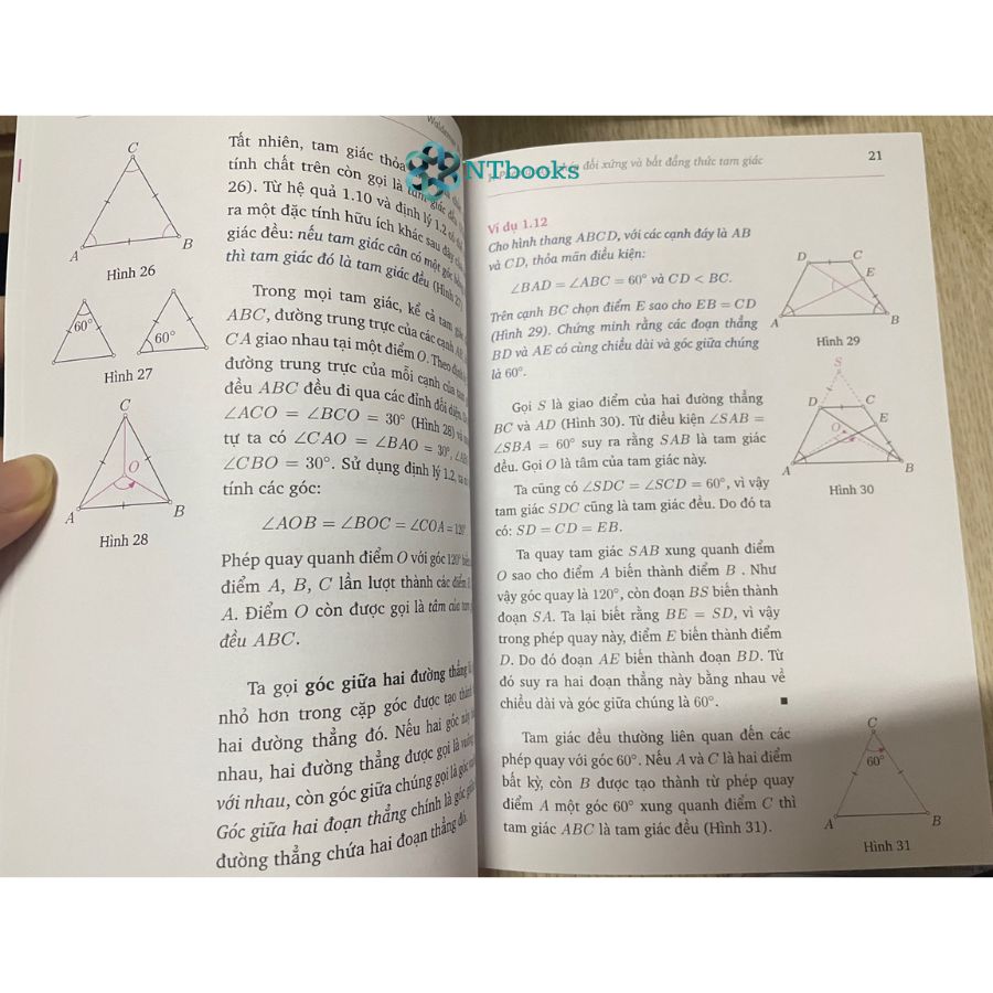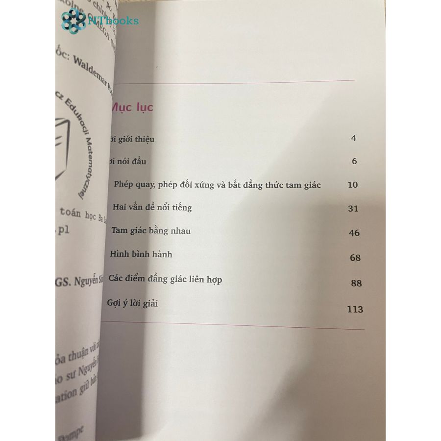 Được viết bởi Giáo sư toán học Waldemar Pompe và được dịch bởi hai giáo sư toán học Nguyễn Hùng Sơn và Nguyễn Sinh Hoa, cuốn sách trình bày một cách mới mẻ và bổ ích về hình học sơ cấp, dựa trên các phép biến đổi đối xứng bảo toàn hình. Cách tiếp cận này là công cụ quan trọng của toán học hiện đại.