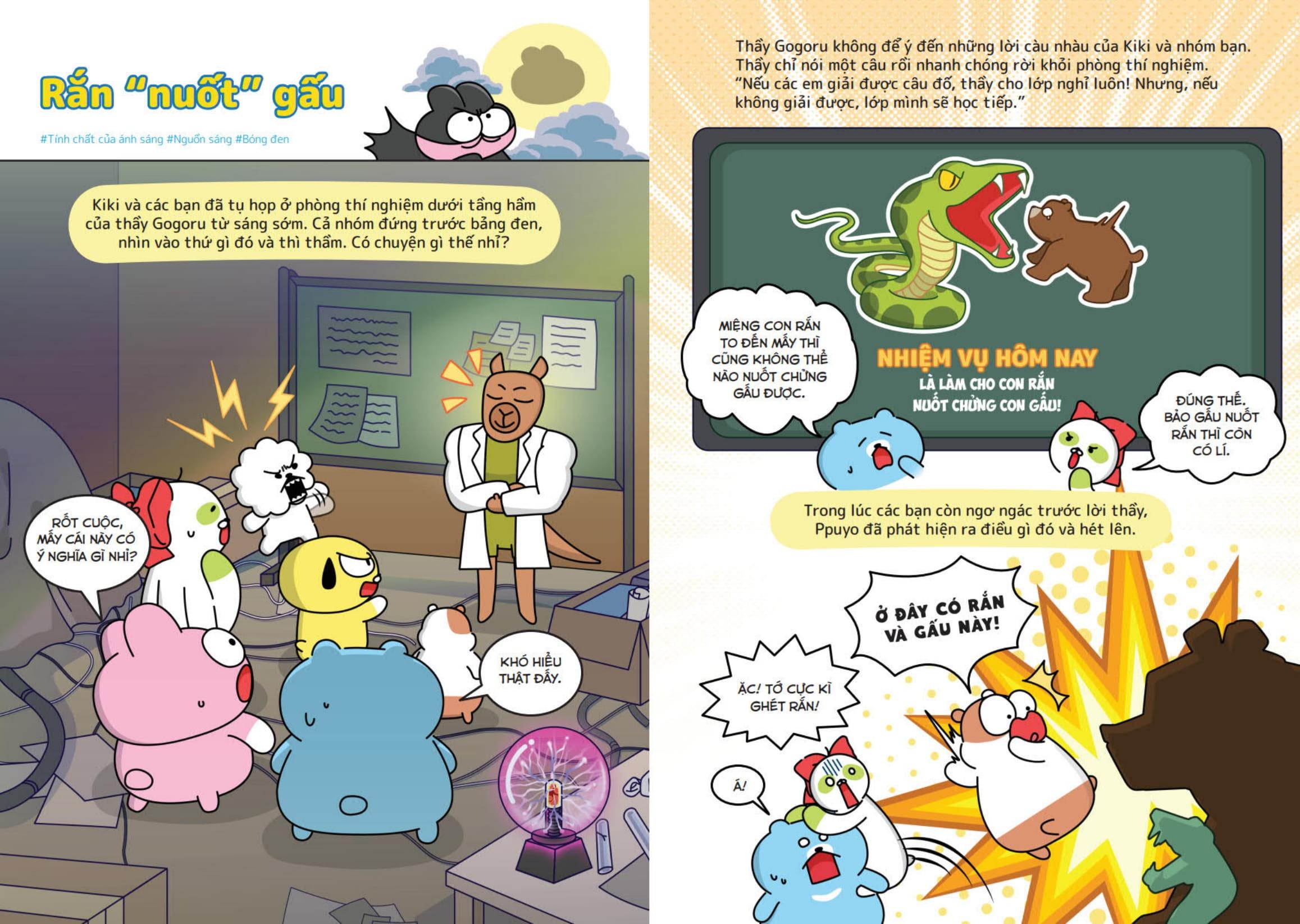 Nhóm Zookiz quy tụ những bạn nhỏ tinh nghịch mà đáng yêu: thỏ Kiki láu lỉnh, gấu Bongbong ham ăn, “hổ chó” Alex hay càu nhàu, chuột cảnh Ppuyo ngốc nghếch, lười Nana điệu đà, chó xù Pang ham vui. Theo chân Zookiz, các độc giả nhỏ sẽ bước vào những cuộc phiêu lưu kì thú và hài hước tại trường khoa học bí ẩn đồng thời học thêm nhiều kiến thức bổ ích.