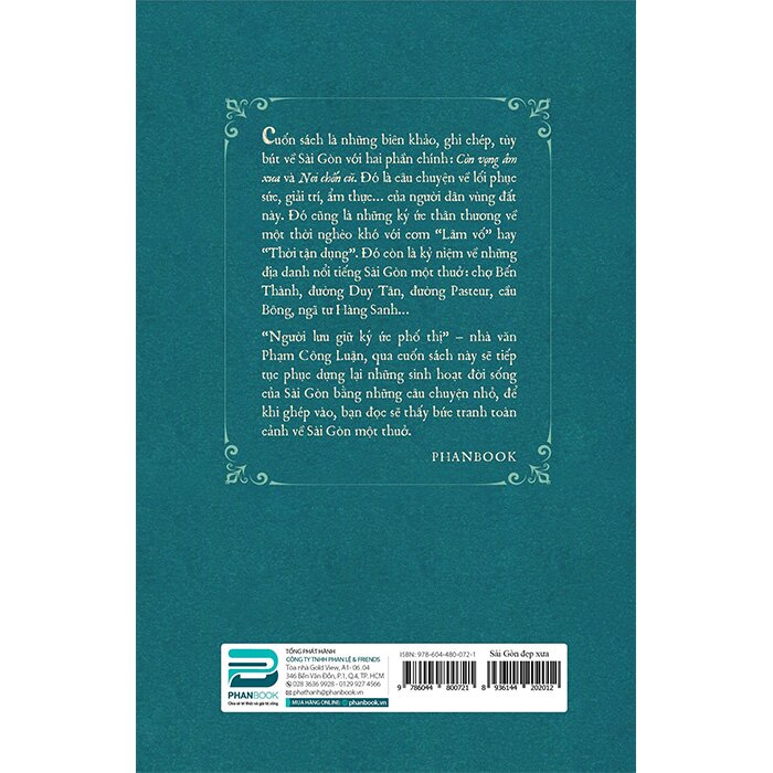 “Người lưu giữ ký ức phố thị” – nhà văn Phạm Công Luận, qua cuốn sách này sẽ tiếp tục phục dựng lại những sinh hoạt đời sống của Sài Gòn bằng những câu chuyện nhỏ, để khi ghép vào, bạn đọc sẽ thấy bức tranh toàn cảnh về Sài Gòn một thuở.