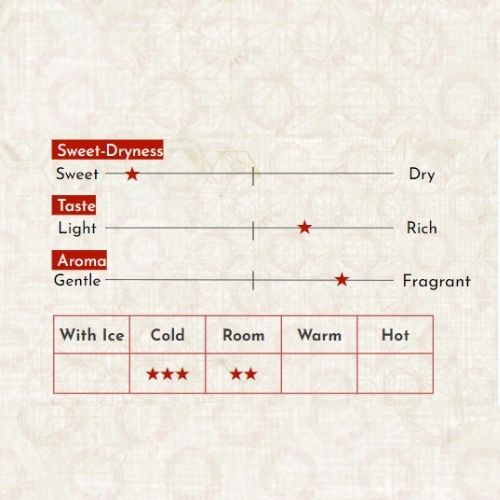 Được ủ trong thùng gỗ tuyết tùng ngay trước khi đóng chai, loại rượu Sake Taru ("thùng") này bùng nổ với hương vị nồng nàn và đặc sắc. Có vị cay và hương thơm thảo