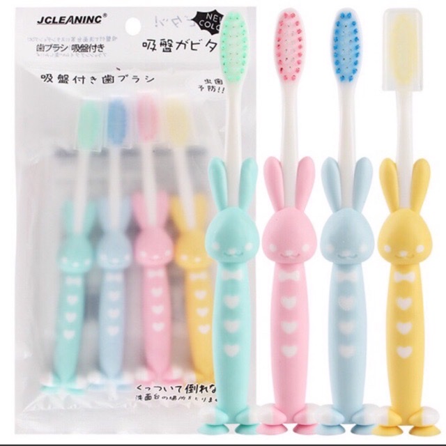 ✨Sản phẩm dụng cụ vệ sinh -Com bo túi 4 bàn chải đánh răng hình thú cho bé có đế hít nhiều màu ,lông bàn chải siêu mềm phù hợp cho bé dưới 10 tuổi