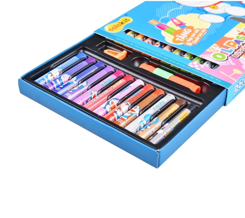 Bút sáp dầu Colokit Doraemon có 12/18/24 màu sắc đậm, tươi sáng giúp bức tranh trở nên có hồn và có chiều sâu hơn. Đặc biệt, trong mỗi sản phẩm có tặng kèm 1