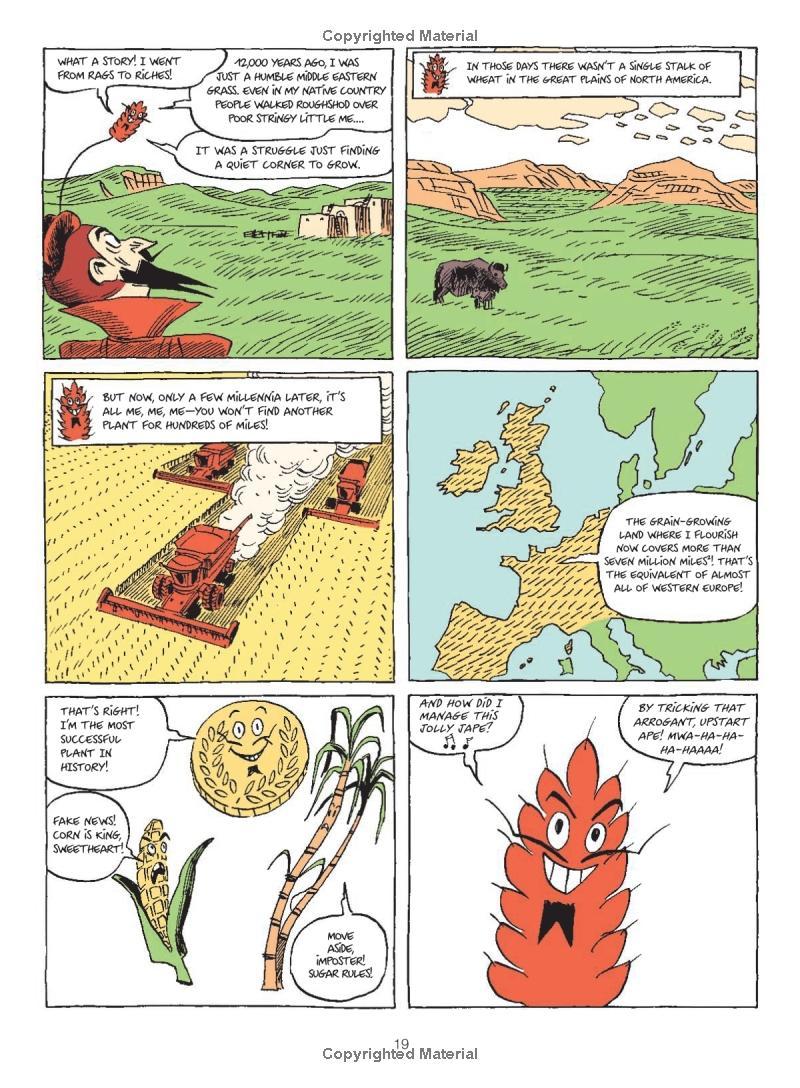 The origins of modern farming are told through Elizabethan tragedy, the changing fortunes of domesticated plants and animals are tracked in the columns of the Daily Business News, and the history of inequality is revealed in a superhero detective story.