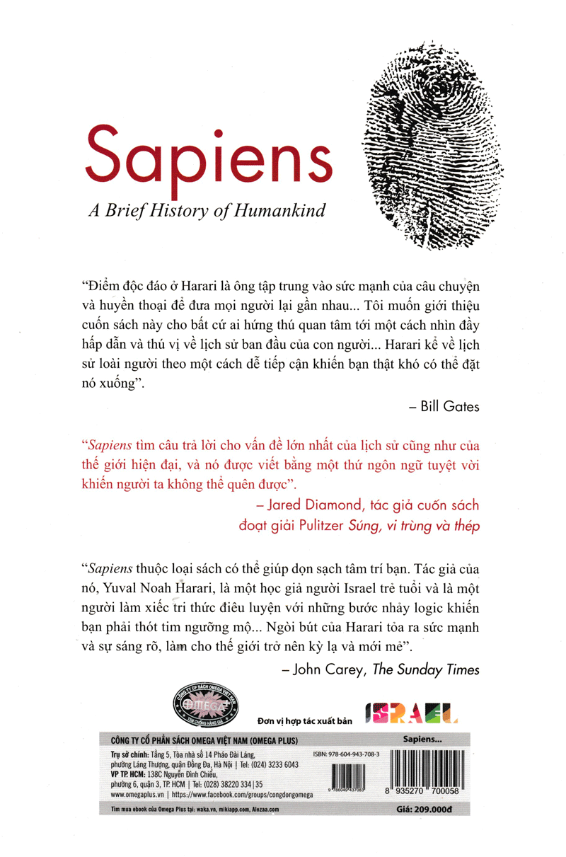 Sapiens, đưa chúng ta vào một chuyến đi kinh ngạc qua toàn bộ lịch sử loài người, từ những gốc rễ tiến hóa của nó đến thời đại của chủ nghĩa tư bản và kỹ thuật di truyền, để khám phá tại sao chúng ta đang trong những điều kiện sinh sống hiện tại.