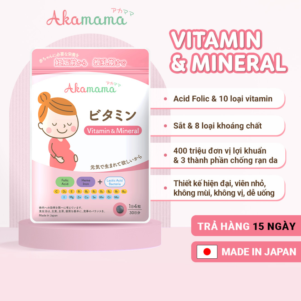 Ưu điểm nổ bật của viên uống Vitamin tổng hợp cho mẹ bầu Akamama Nhật Bản: