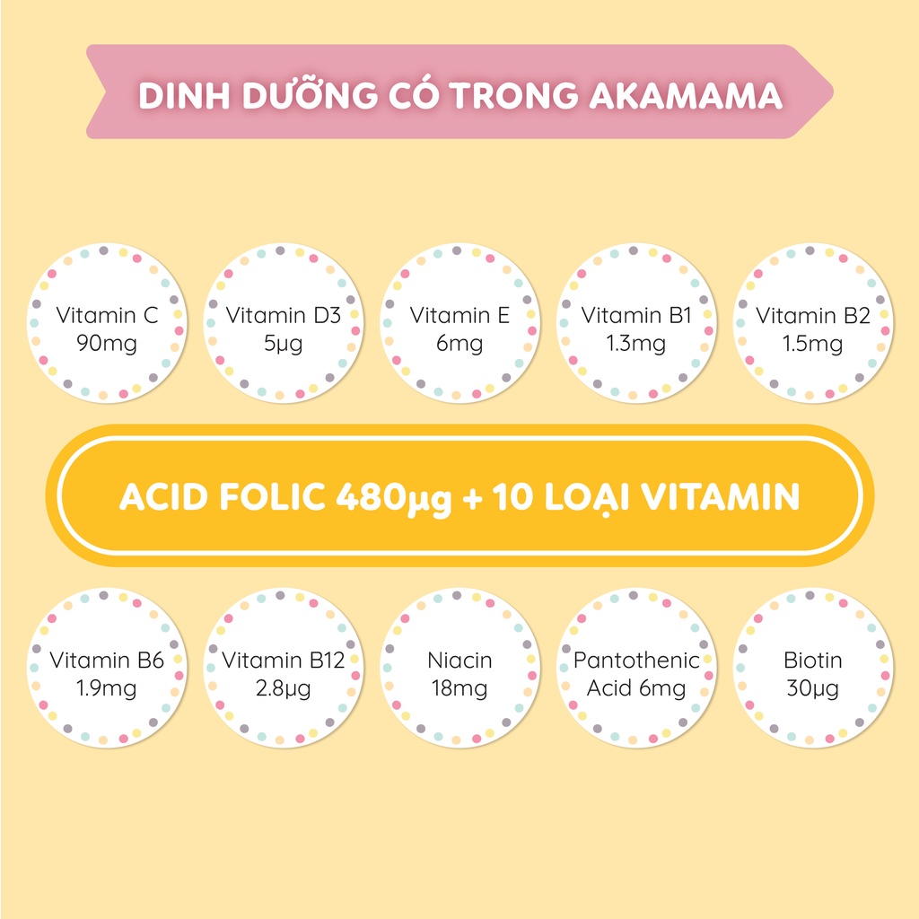 Ưu điểm nổ bật của viên uống Vitamin tổng hợp cho mẹ bầu Akamama Nhật Bản: Ưu điểm 1: Bổ sung đầy đủ 11 loại vitamin và 9 loại khoáng chất cần thiết cho thai