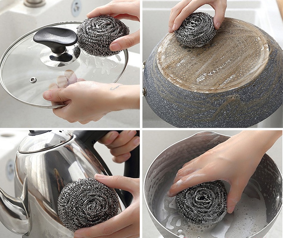 • Công dụng: Dùng để đánh sạch các vết ố, cặn bẩn, cặn cháy bám trên đáy xoong nồi và các đồ dùng bằng kim loại trong gia đình.