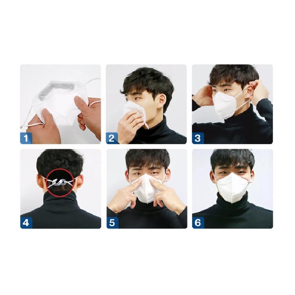 - khẩu trang KF94 3M giúp làm giảm nguy cơ hít phải các hạt tiểu phân không chứa dầu như là bụi mịn, cát, khói bụi xe cộ, phấn hoa, chất ô nhiễm trong không khí, PM2.5, PM10, virút và các hạt tiểu phân gây hại khác trong không khí. Cách sử dụng khẩu trang 9013 KF94? Bước 1: Đặt khẩu trang 3M lên mặt Bước 2: Kéo dây buộc bên trên khẩu trang vòng qua đầu sao cho dây buộc nằm bên trên lỗ tai. Bước 3: Kéo dây buộc còn lại vòng qua đầu, sao cho dây buộc nằm phía dưới lỗ tai. Bước 4: Dùng hai tay, điều chỉnh thanh kim loại điều chỉnh sao cho vừa khít với sống mũi. Bước 5: Kiểm tra độ kín khít của khẩu trang với khuôn mặt Lưu ý khi sử dụng khẩu trang 9013 KF94?