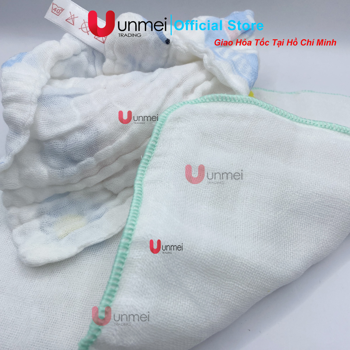 ✨Set 10 Khăn Xô, Khăn Sữa UNMEI Dày 6 Lớp 100% Cotton An Toàn, Thấm Hút Tốt, Tiện Lợi Cho Trẻ Từ Sơ Sinh (5 Khăn Xô Trắng KT25x25cm, 5 Khăn Xô Nhăn Hình 30x30cm)
